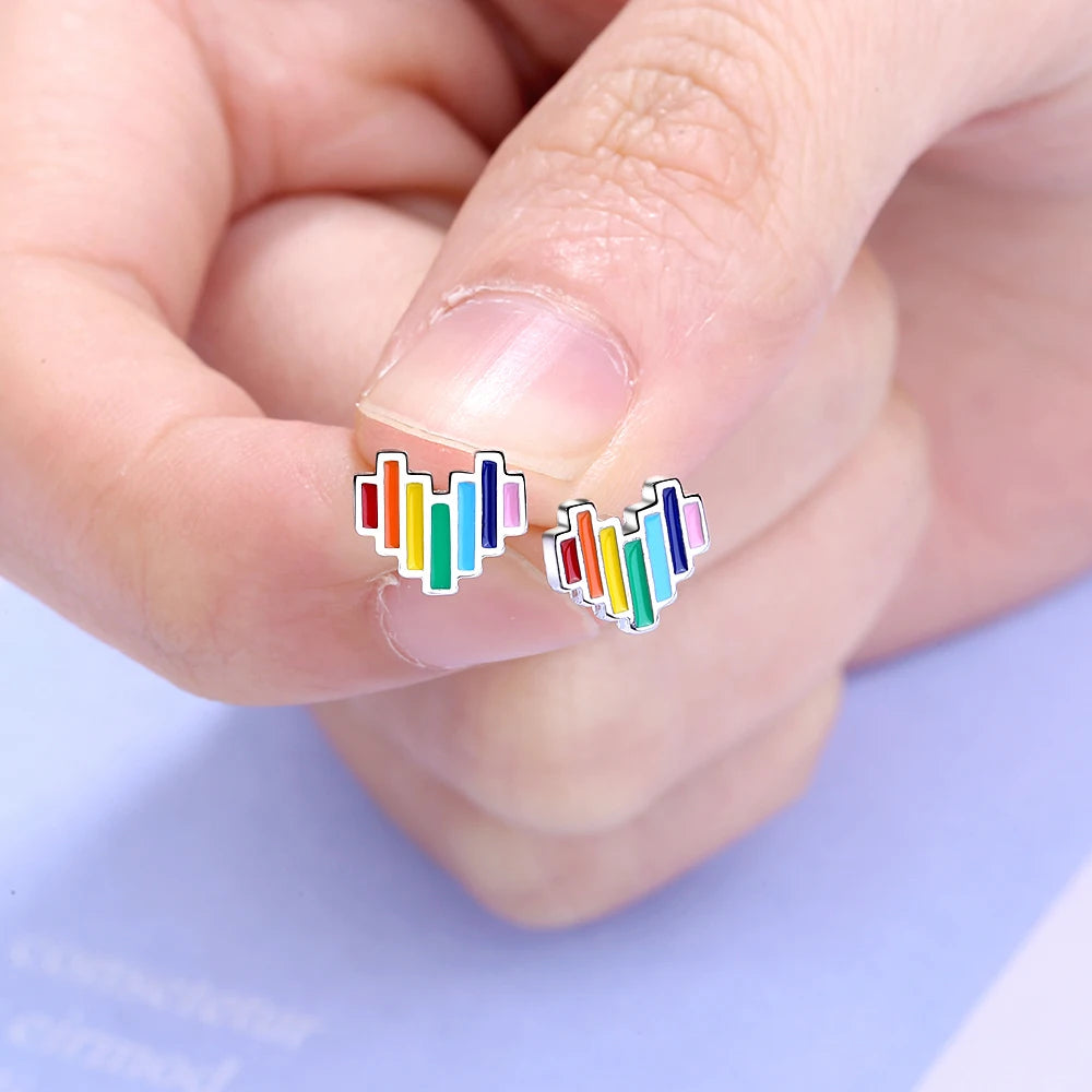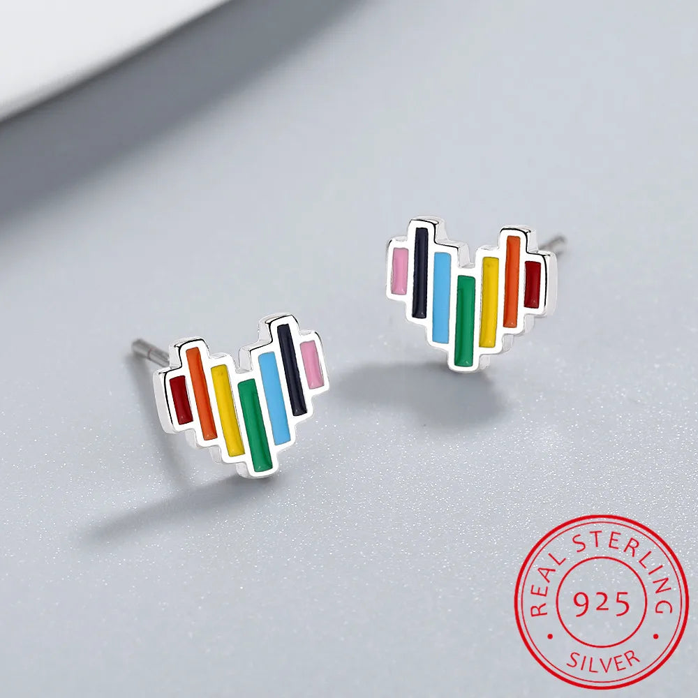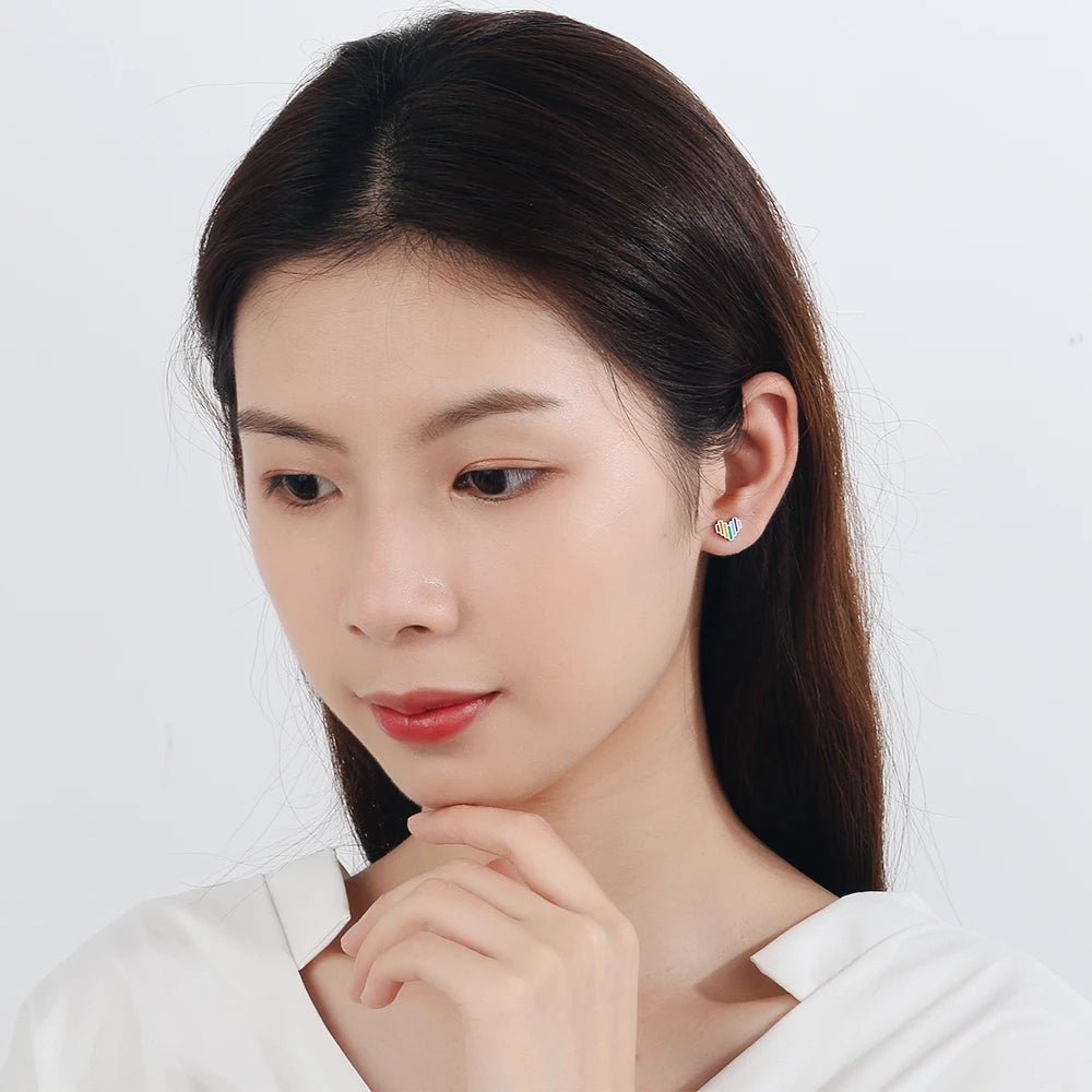 These colorful rainbow hearts stud earrings are crafted from 925 sterling silver, perfect for women and girls. The fine workmanship and enamel detail make these earrings a stylish addition to any outfit.