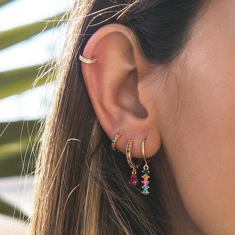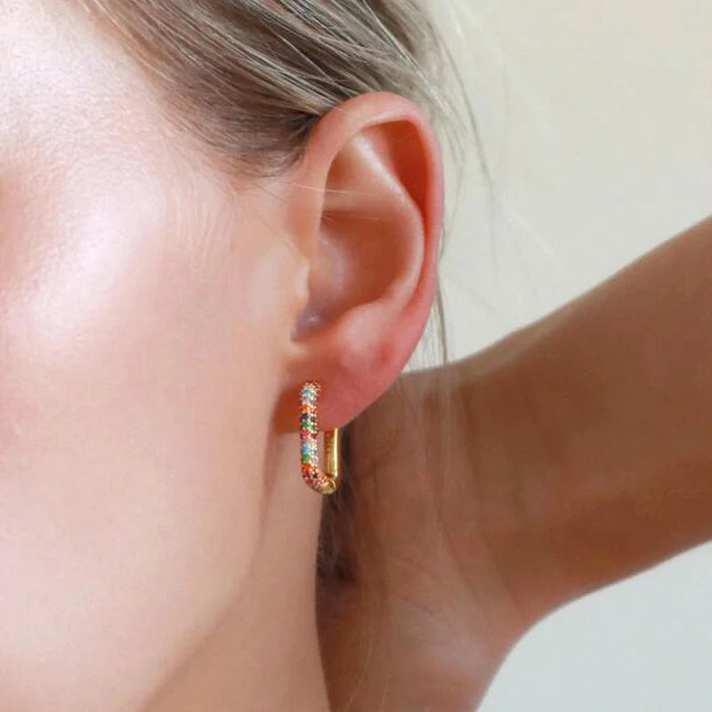 925 Sterling Silver Needle Rainbow Series Hoop Earrings for Women, perfect for weddings and special occasions.
