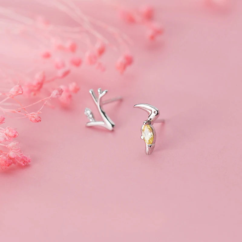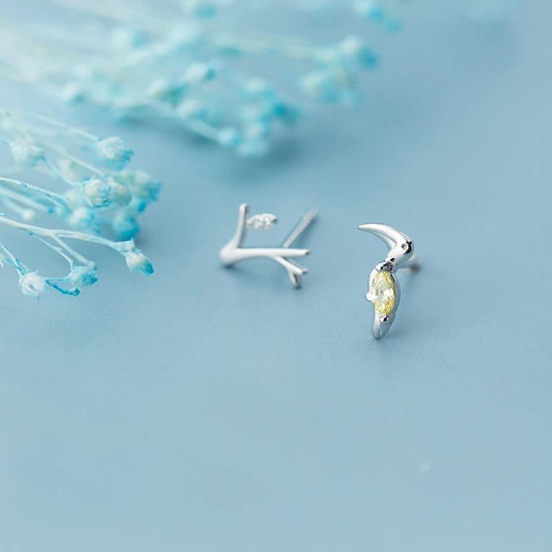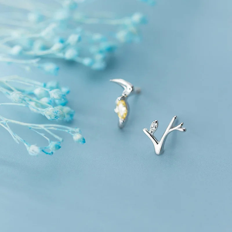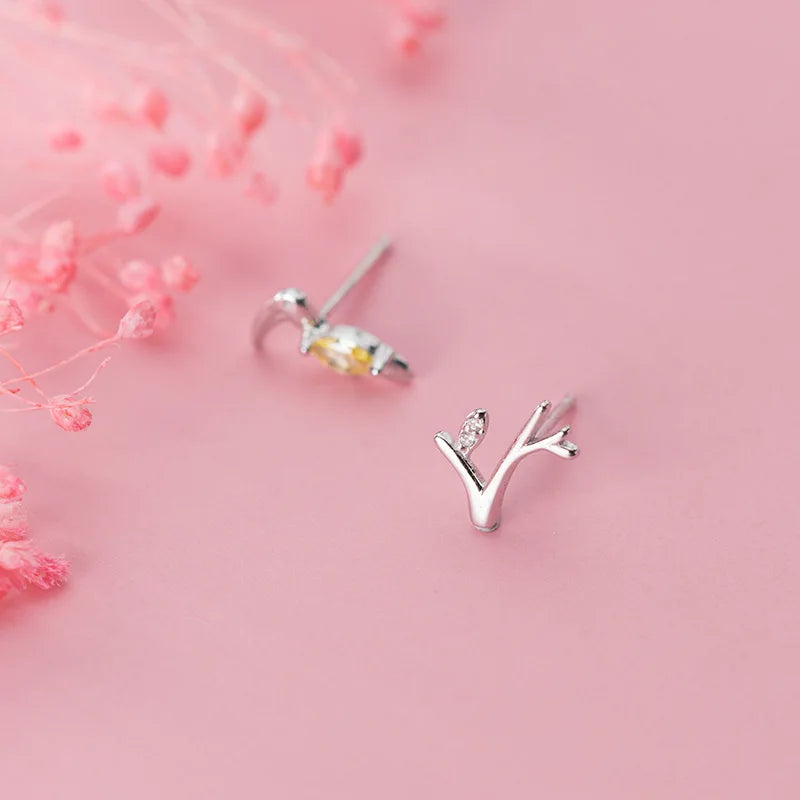Add a touch of forest style with these exquisite sterling silver earrings. A perfect birthday gift for any nature lover. Crafted with intricate detail, these stud earrings feature a branch with a delicate bird design. Fresh and elegant, these earrings are a unique addition to any jewelry collection.