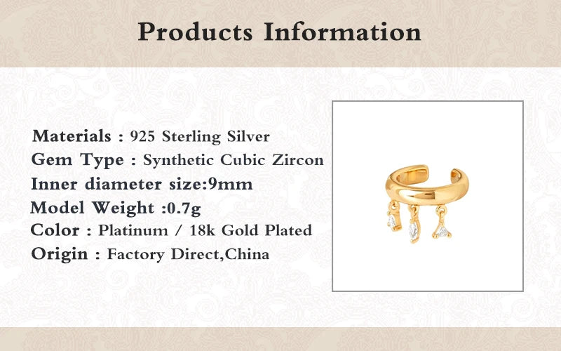 Real Silver 925 Earring Ear Clip Pendientes Jewelry for Women