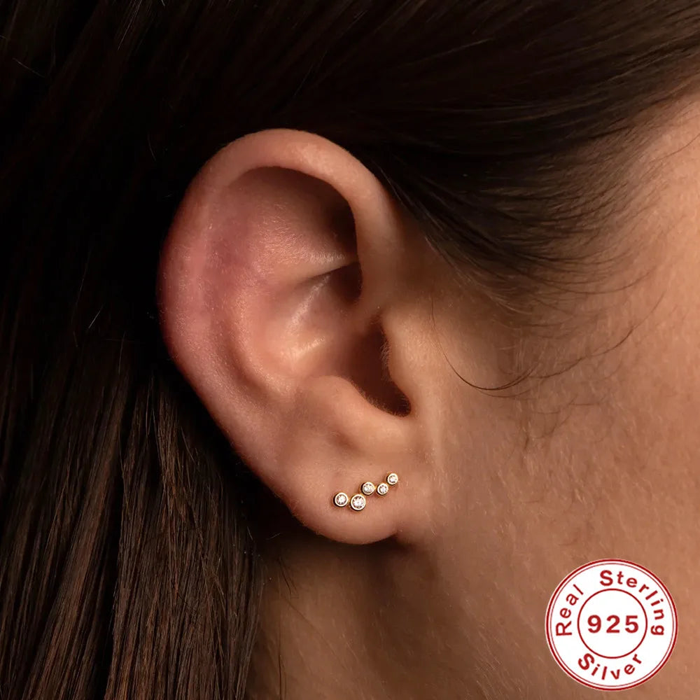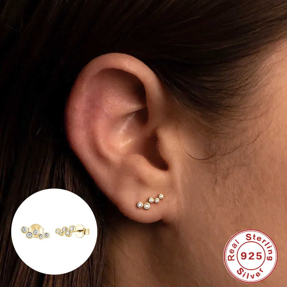 Beautiful and elegant small diamond stud earrings made of genuine sterling silver 925. Perfect for women and girls as a special gift for weddings or engagements.