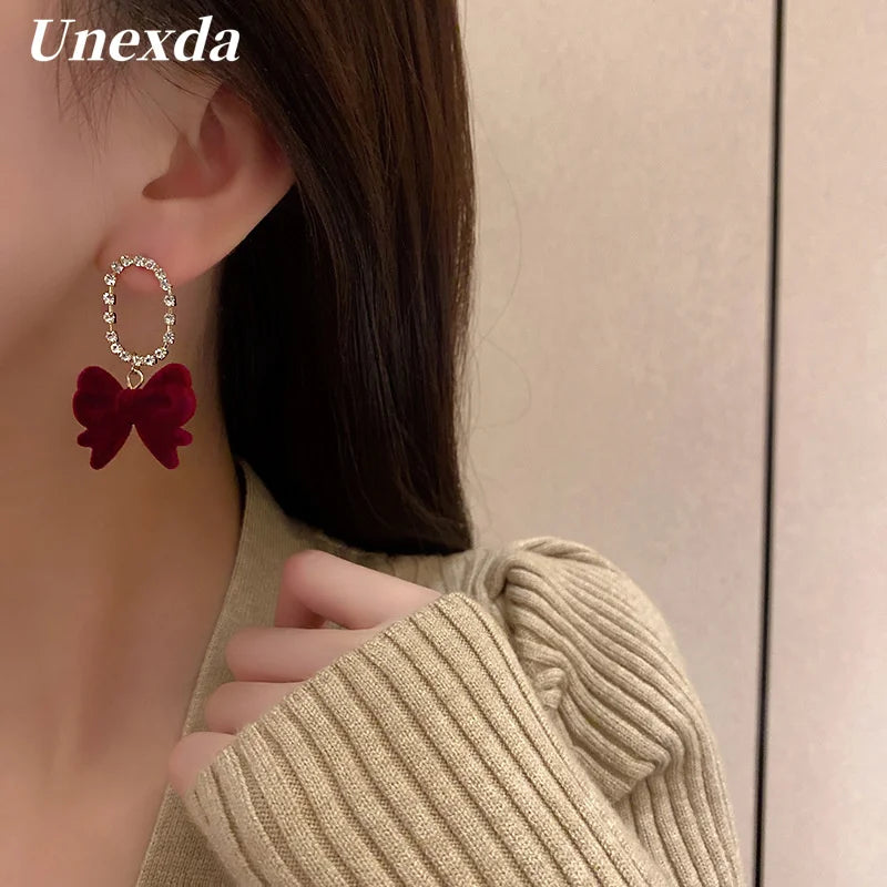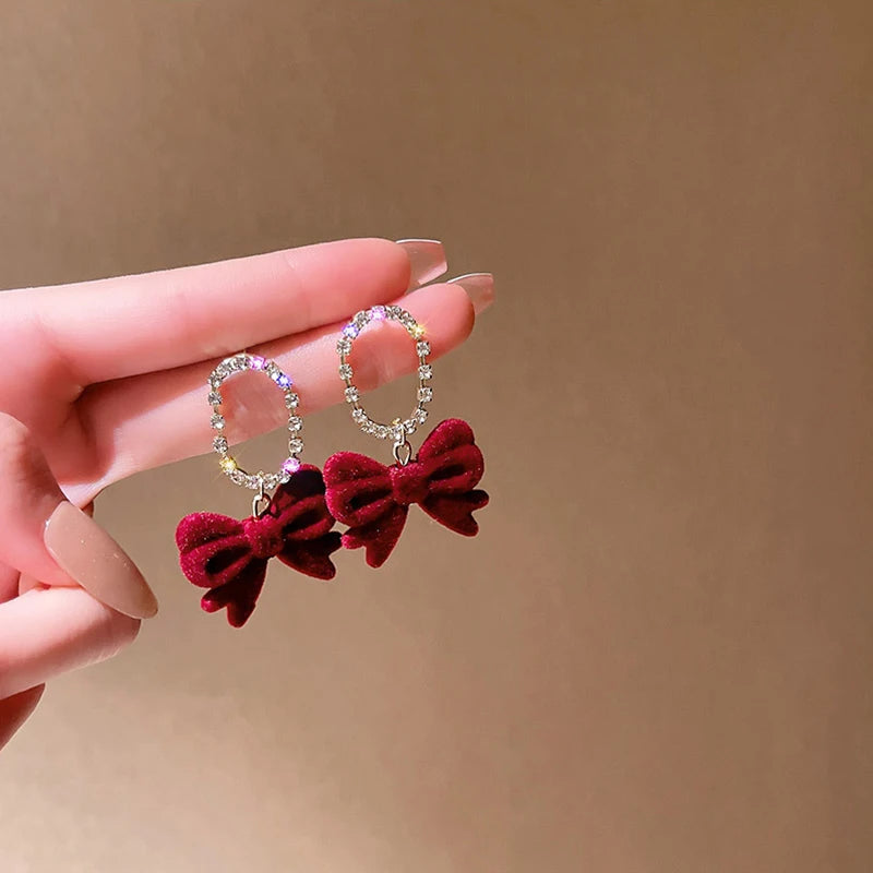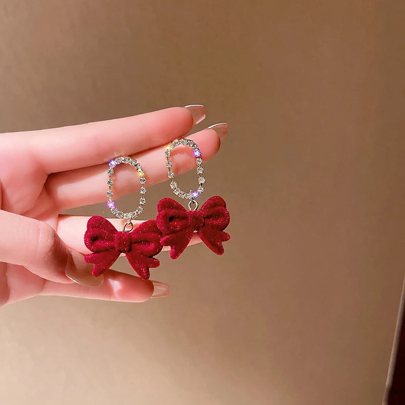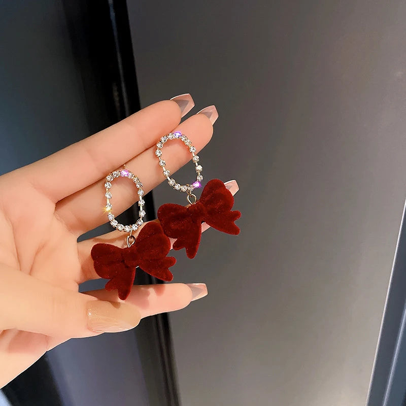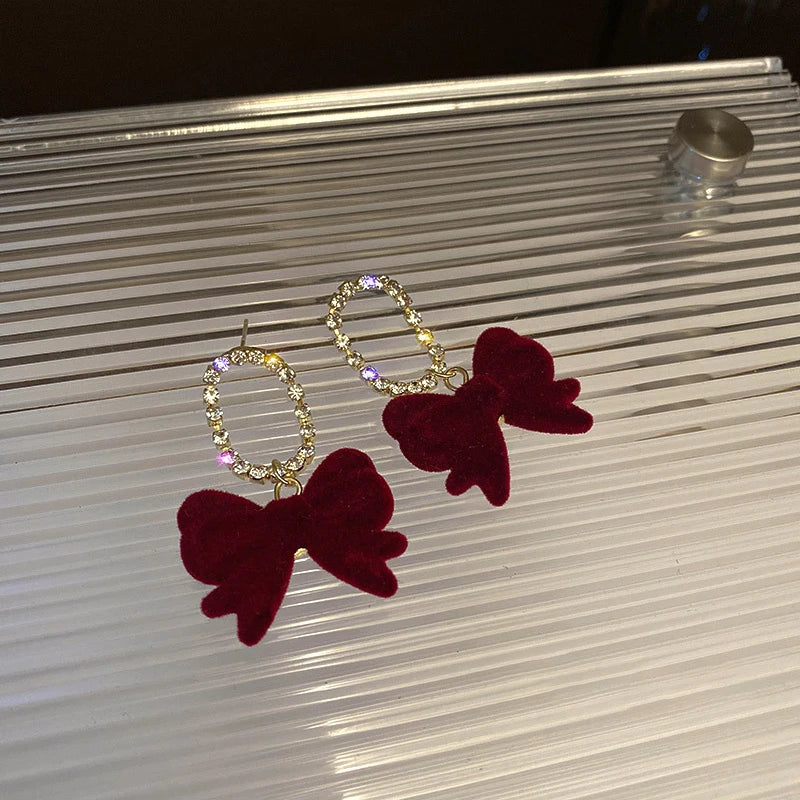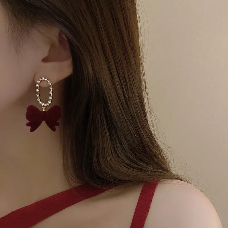 Add a retro touch to your look with these red velvet bow knot earrings featuring long tassels. Perfect for autumn and winter.