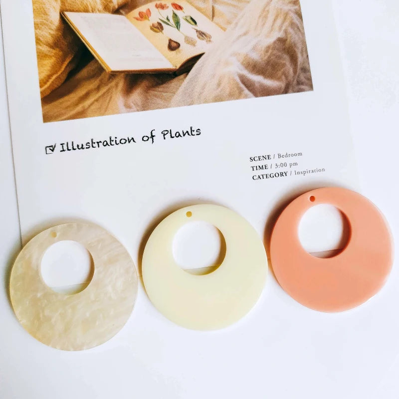 Get creative with these round circle resin plastic pendant eardrop charms for making necklaces and earrings. Each set includes 8 pieces.