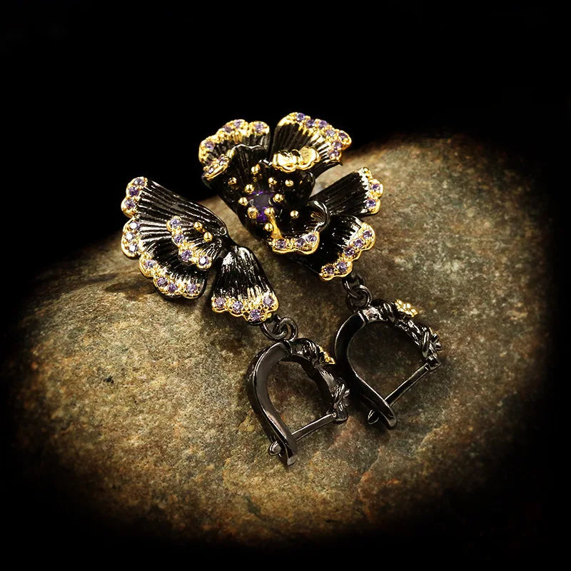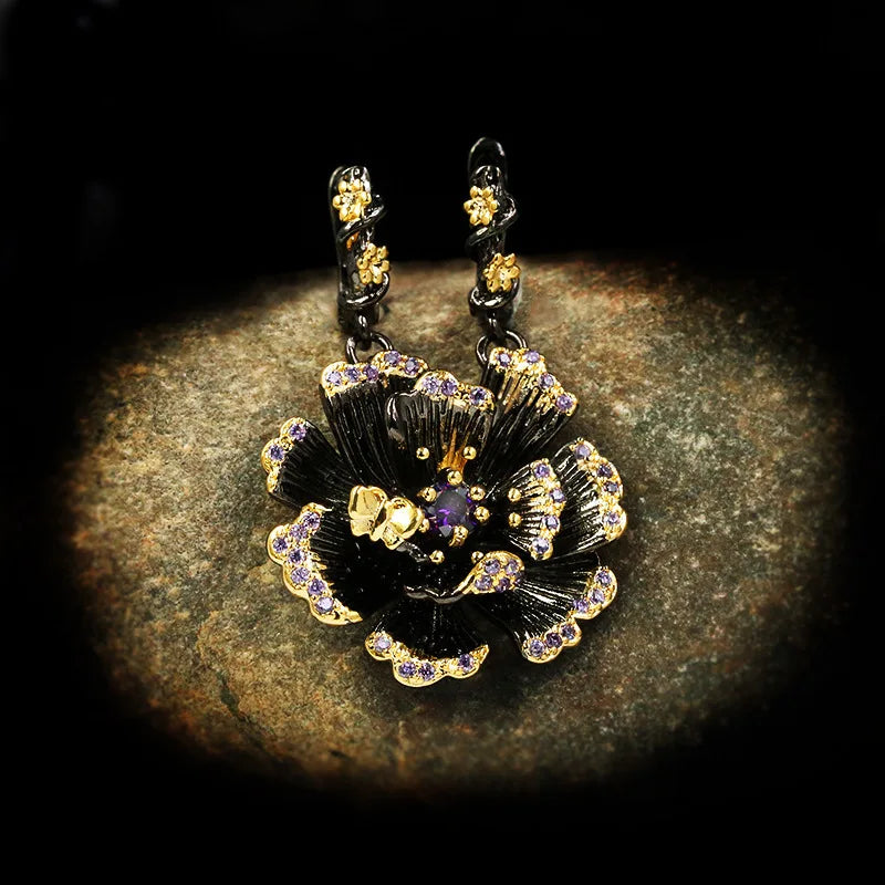 Elevate your style with these high-end sunflower earrings featuring zircon stones. The design is both retro and modern, perfect for adding a touch of glamour to your outfit.