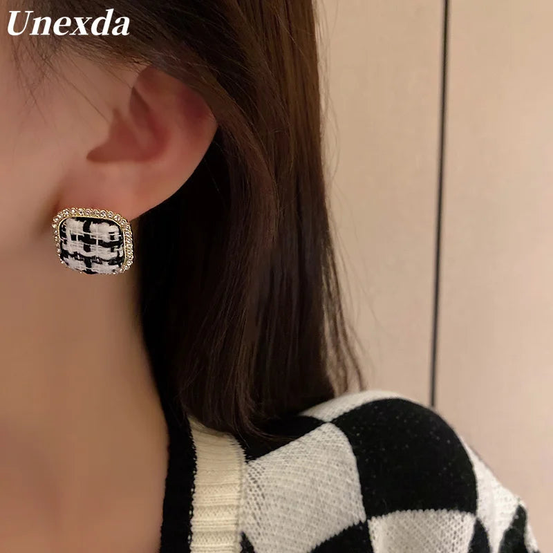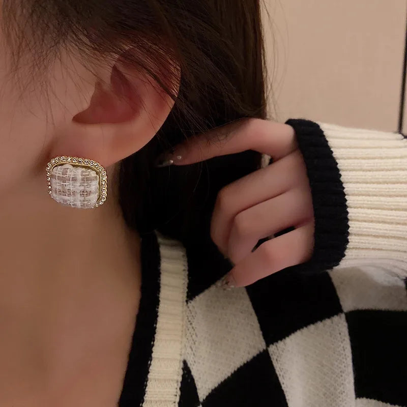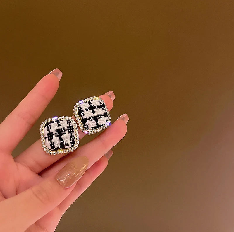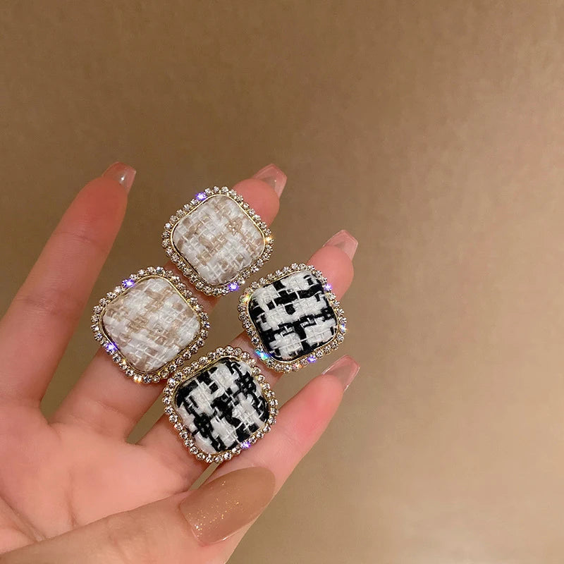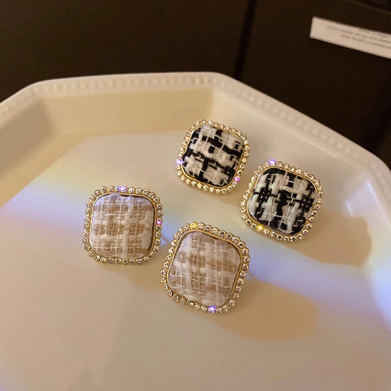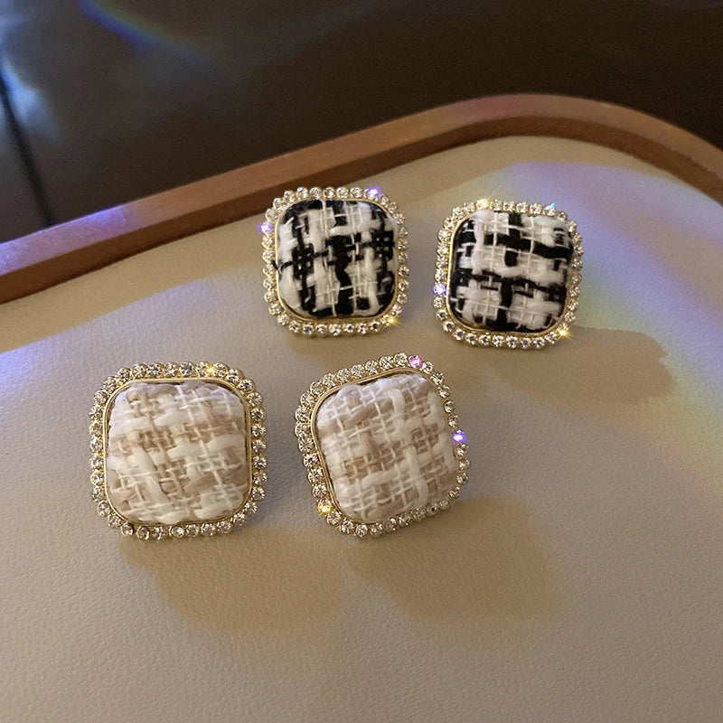 Elevate your style with these elegant retro women glamour earrings. Featuring a velvet plaid square design with stunning diamond accents, these earrings are the perfect accessory for any occasion.