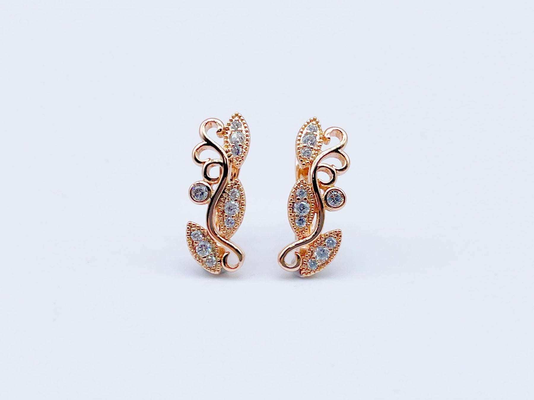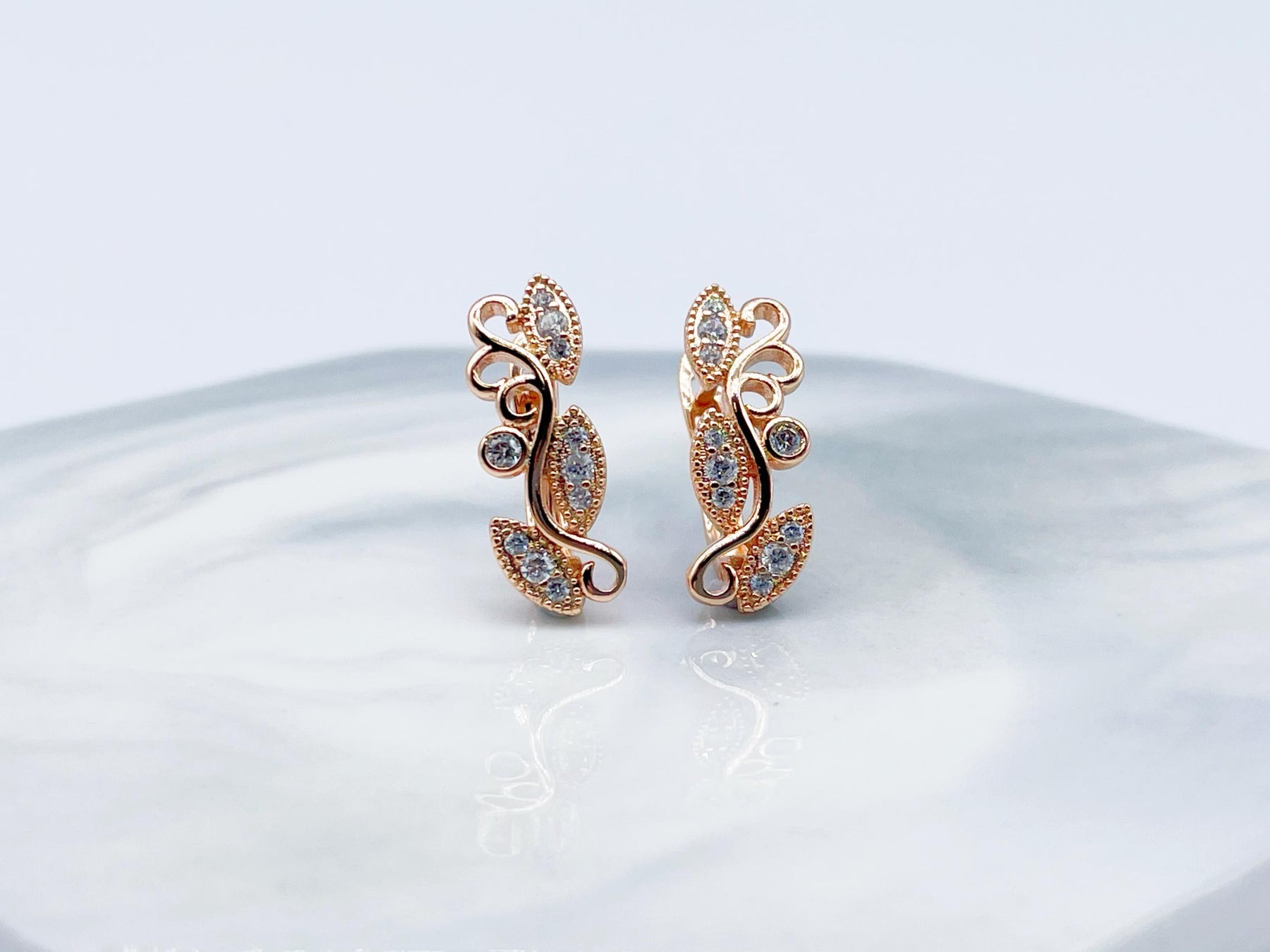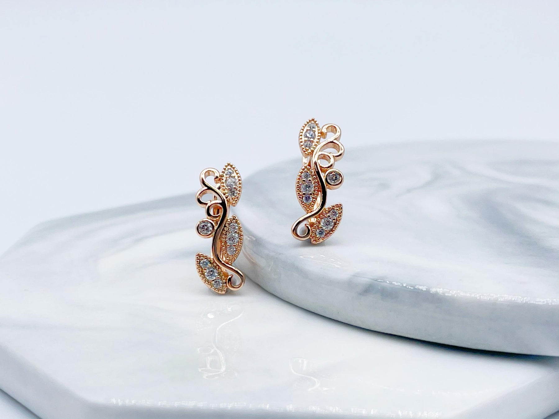 Add a touch of elegance to your look with these 585 rose gold drop earrings featuring a delicate cut out flower vine design. Perfect for weddings and parties.