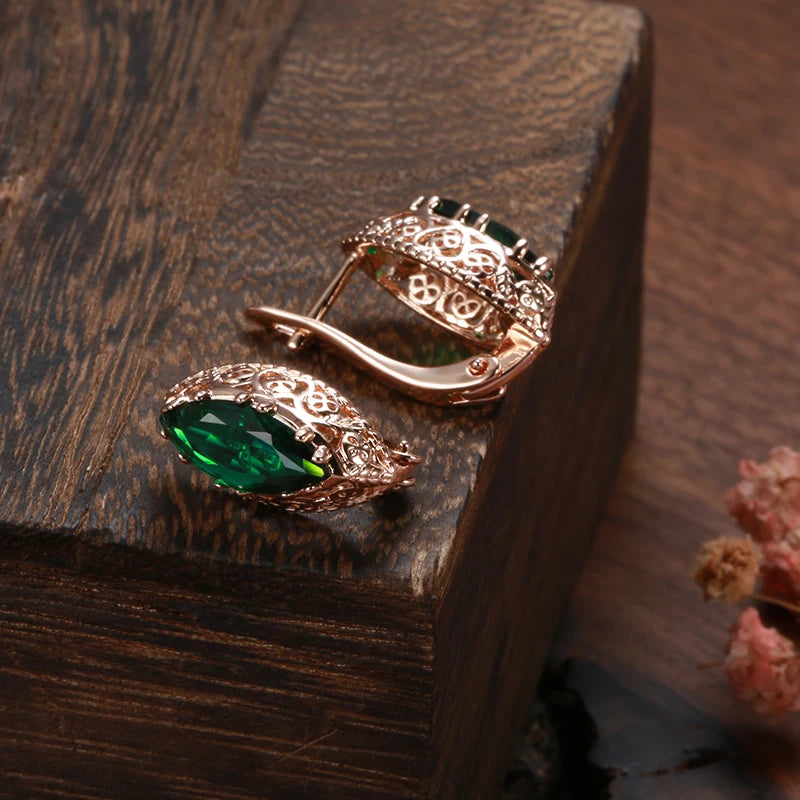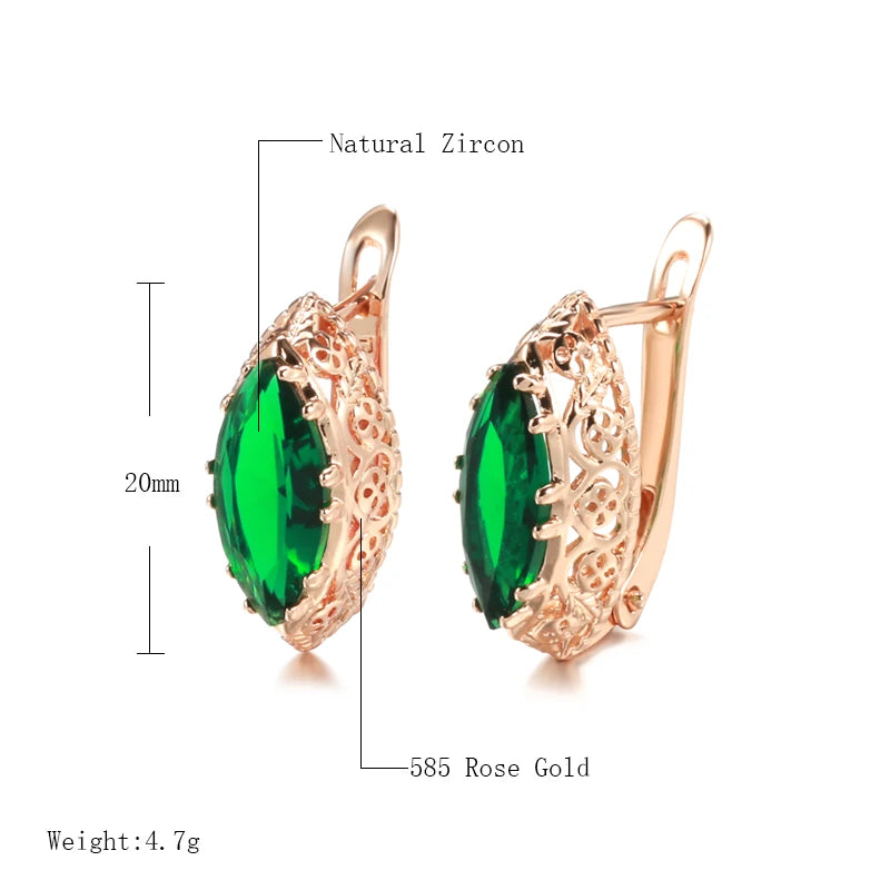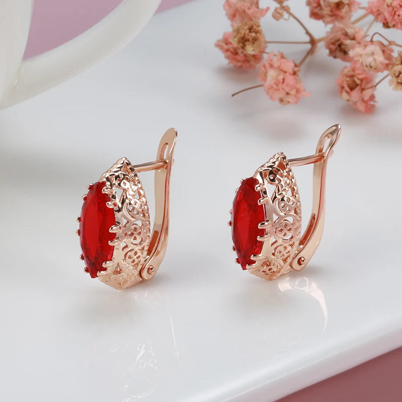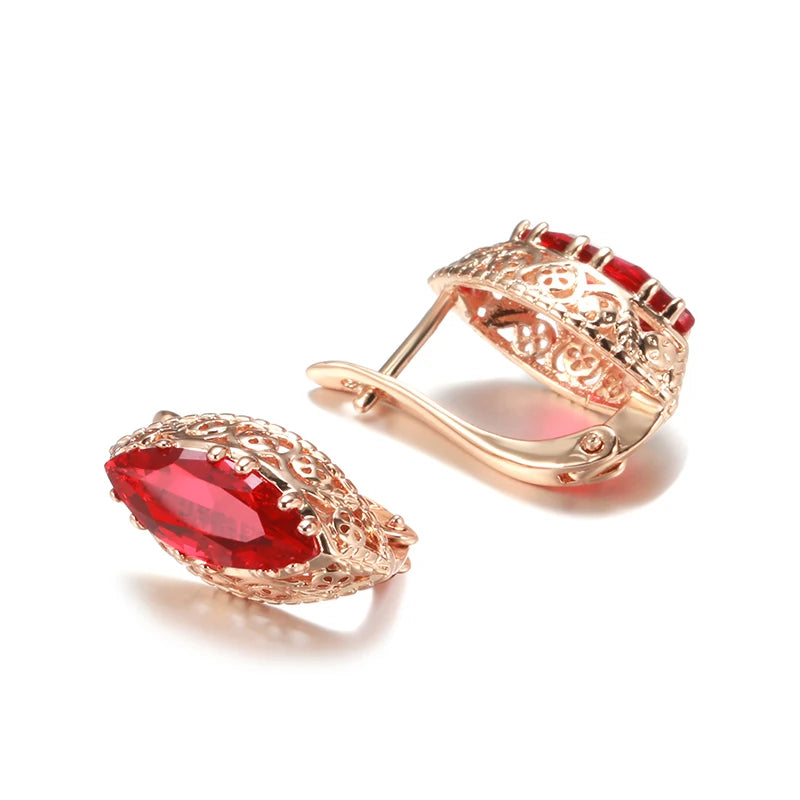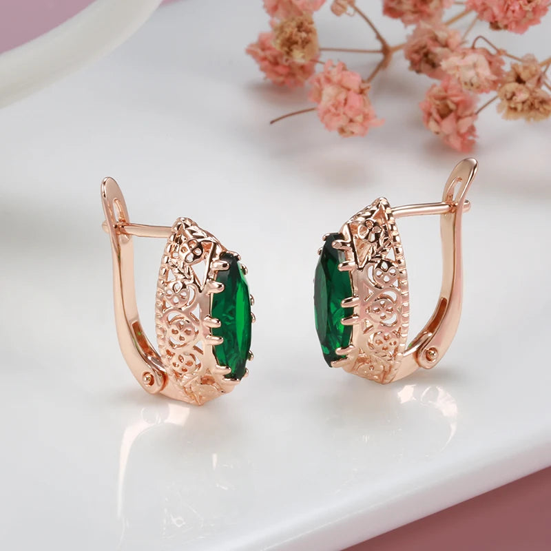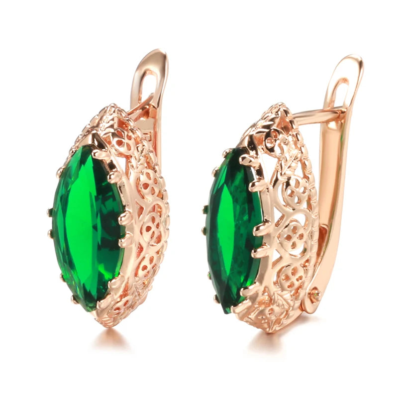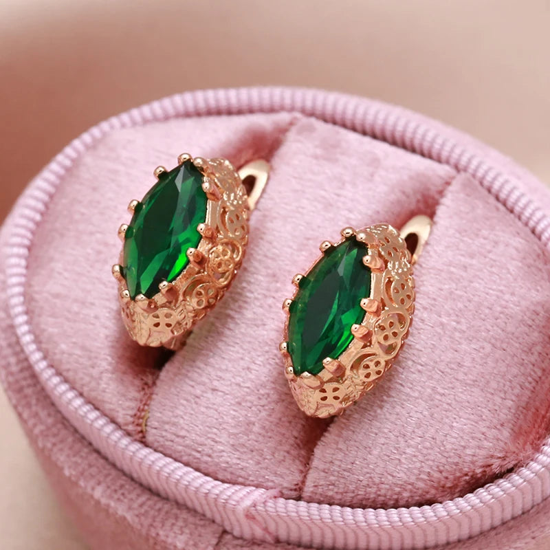 Rose Green Red Oval Zircon Earring Hollow Carve Large Zircon Diamond Clip