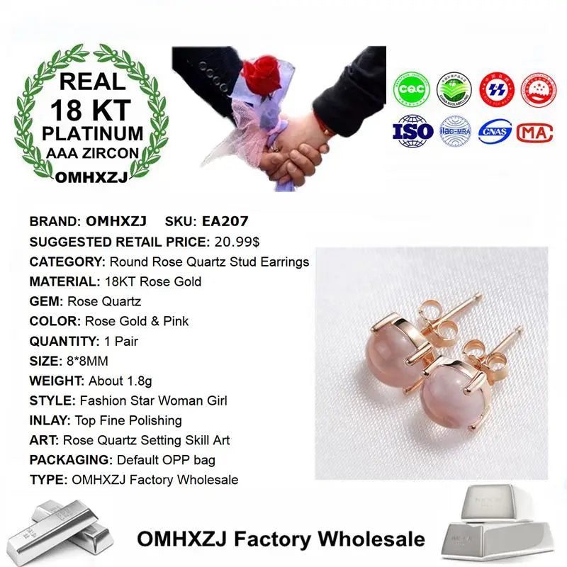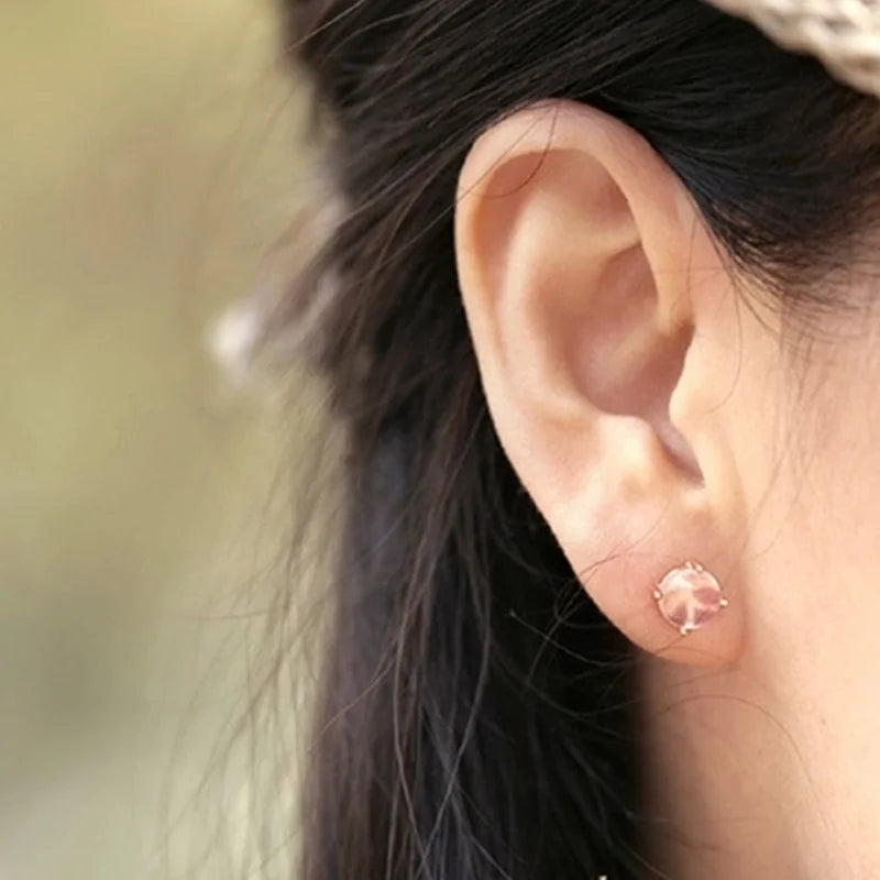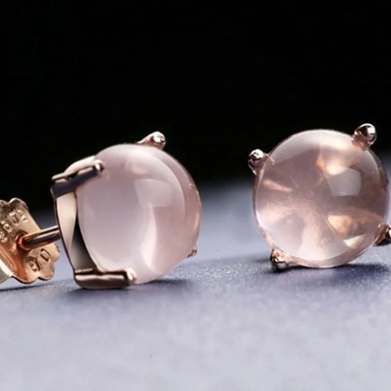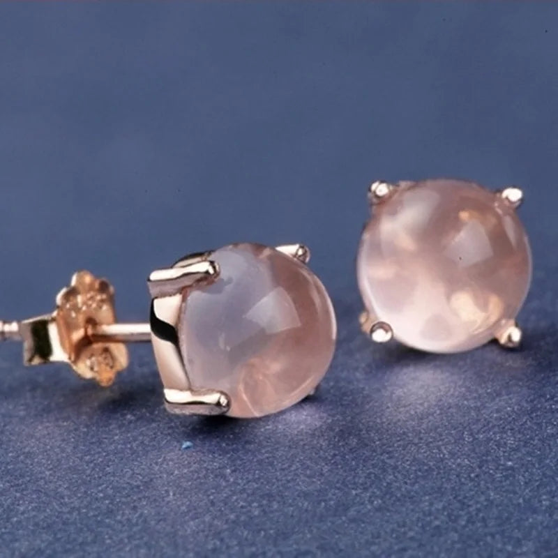 These round pink rose quartz stud earrings are a perfect gift for a European woman or girl. They are ideal for parties, weddings, or special occasions.