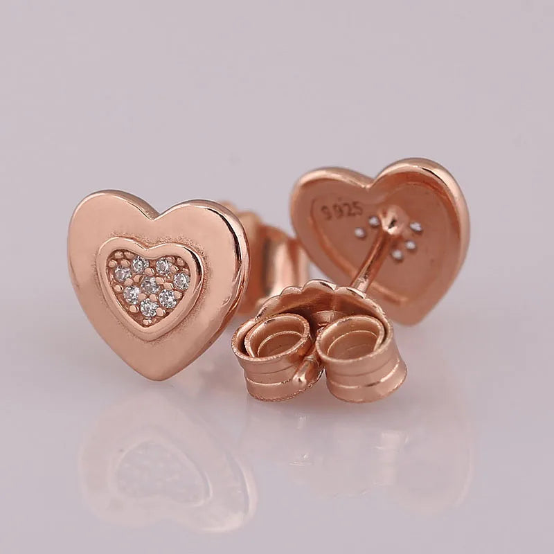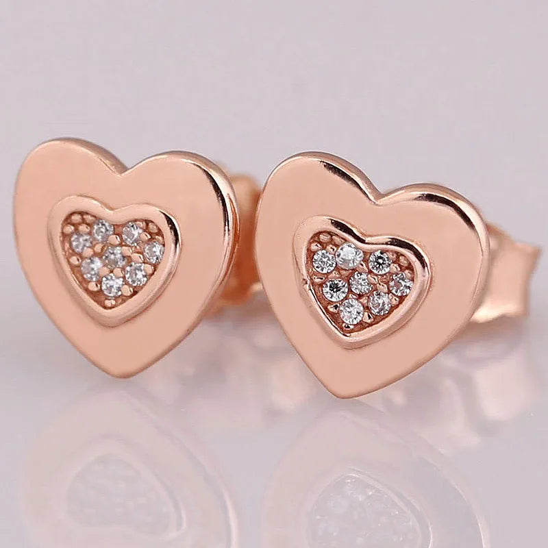 Rose Signature Heart Earring With Crystal Stud 925 Sterling Silver Gift