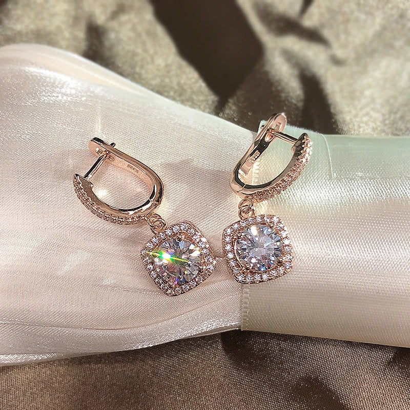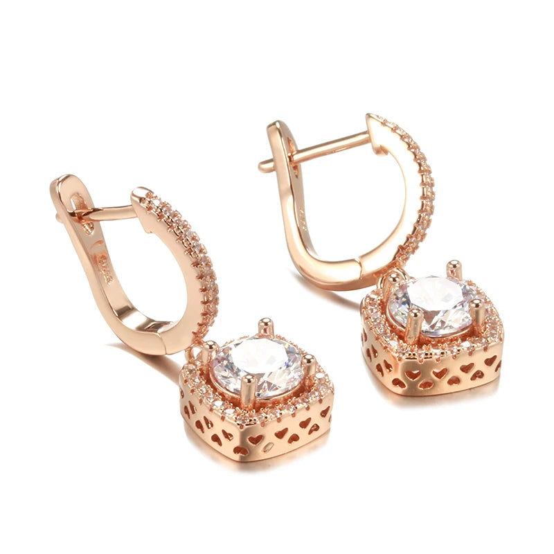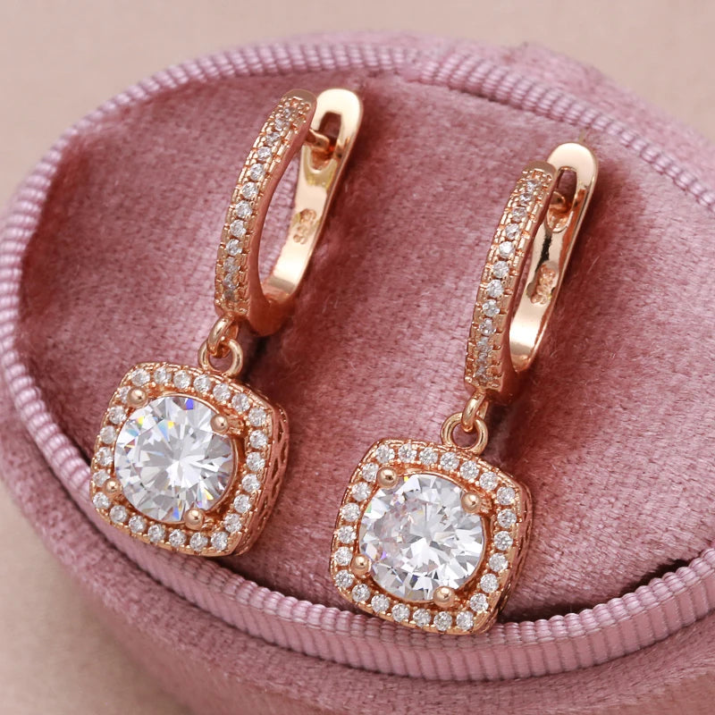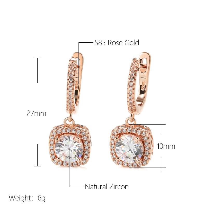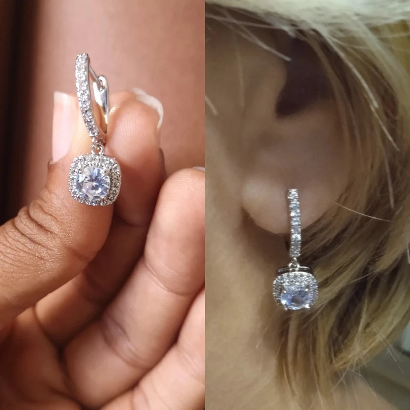 These elegant earrings feature a long pendant design with bling zircons. Perfect for weddings or special occasions.