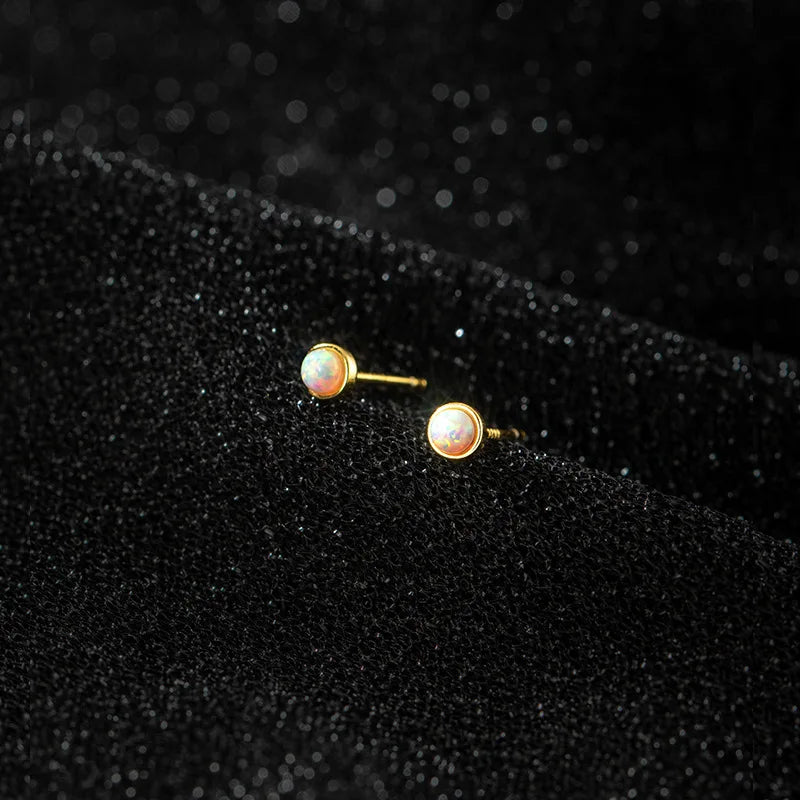 Enhance your look with these elegant silver stud earrings featuring tiny round opal gemstones. Made from 925 sterling silver, these earrings are perfect for everyday wear.