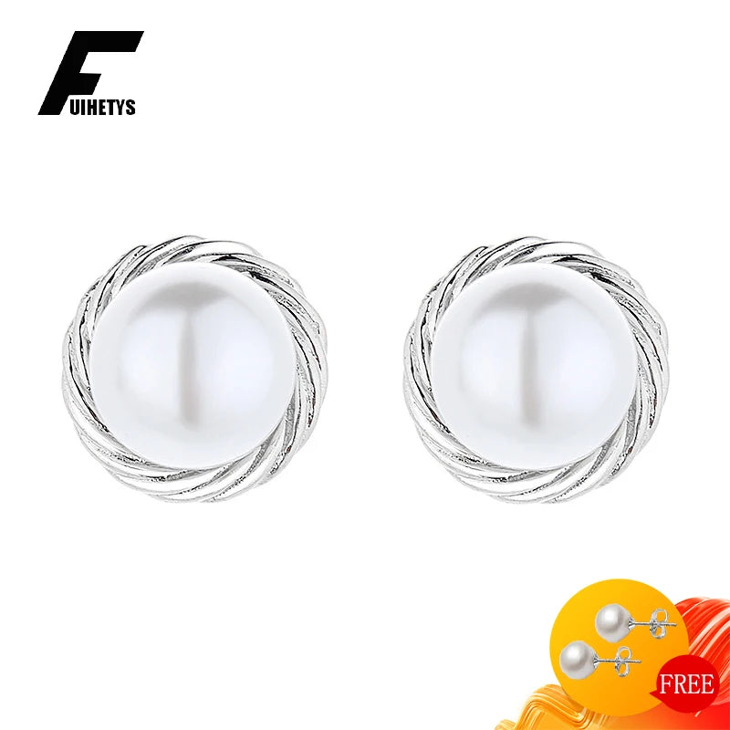 Add a touch of elegance with these round shape pearl earrings. Made with 925 silver, these stud earrings are perfect for women for a wedding, party, or as a bridal gift.
