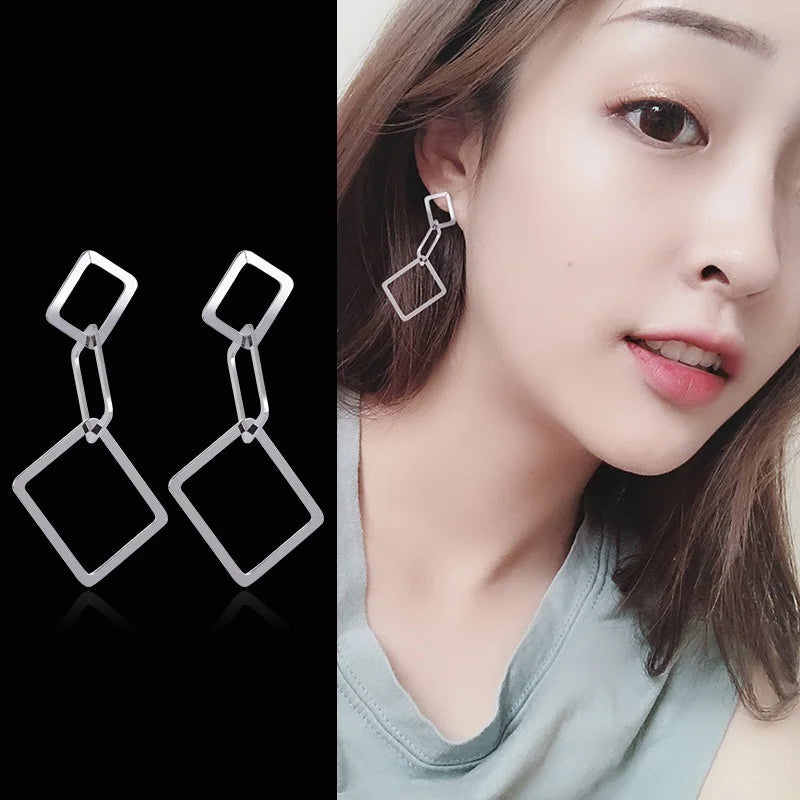 These unique earrings feature a circle geometric design. Made of S925 silver, these earrings are perfect for adding a touch of personality to your outfit.