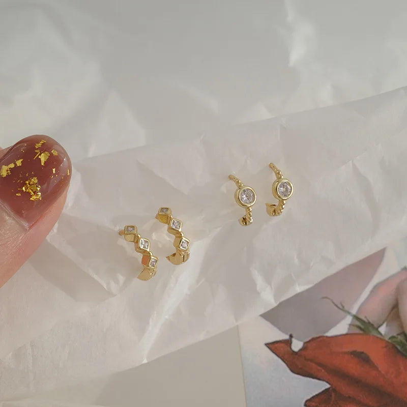 Elegant and stylish S925 sterling silver earrings with zircon round design, perfect for adding a touch of cold wind style.