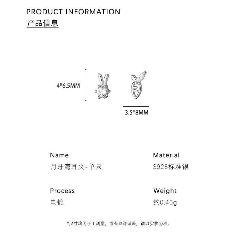 S925 Sterling Silver Asymmetric Carrot Earrings for Women