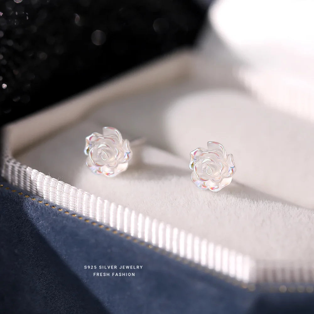 These stunning stud earrings are made of genuine S925 sterling silver with a delicate design of a shell and rose flower. Perfect for parties and special occasions, these earrings will add elegance to any outfit.