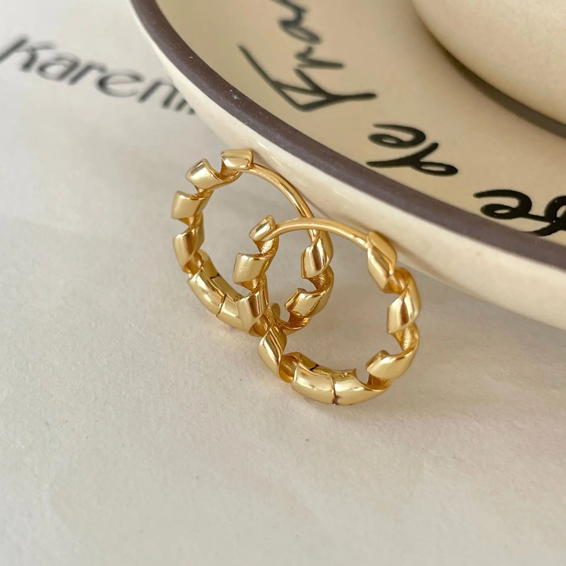 These elegant huggie earrings are crafted from 925 sterling silver with an 18K gold plating. The twist rope design adds a unique touch to the classic circle shape, making them perfect for everyday wear or special occasions.