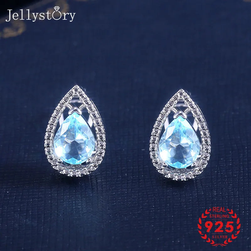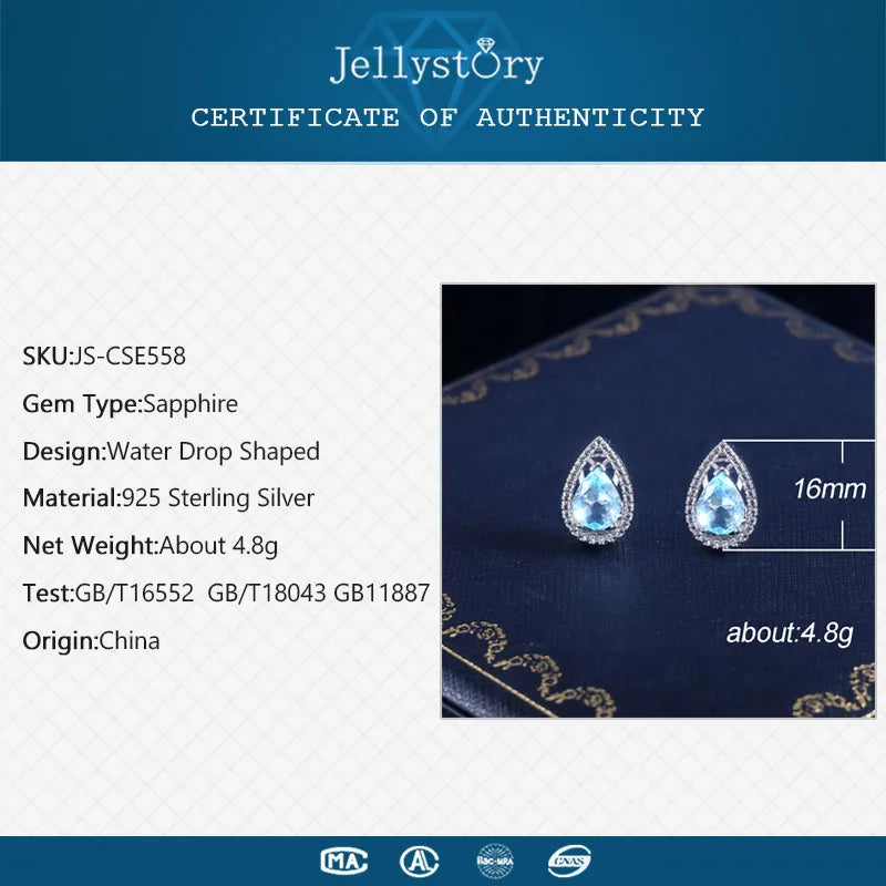 These elegant stud earrings feature water drop shaped sapphire gemstones set in 925 sterling silver. Perfect for weddings, parties, or as a special gift for her.