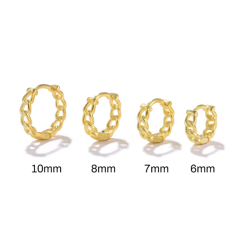 Enhance your style with this set of silver huggie earrings featuring chain design. Perfect for cartilage and hoop lovers.