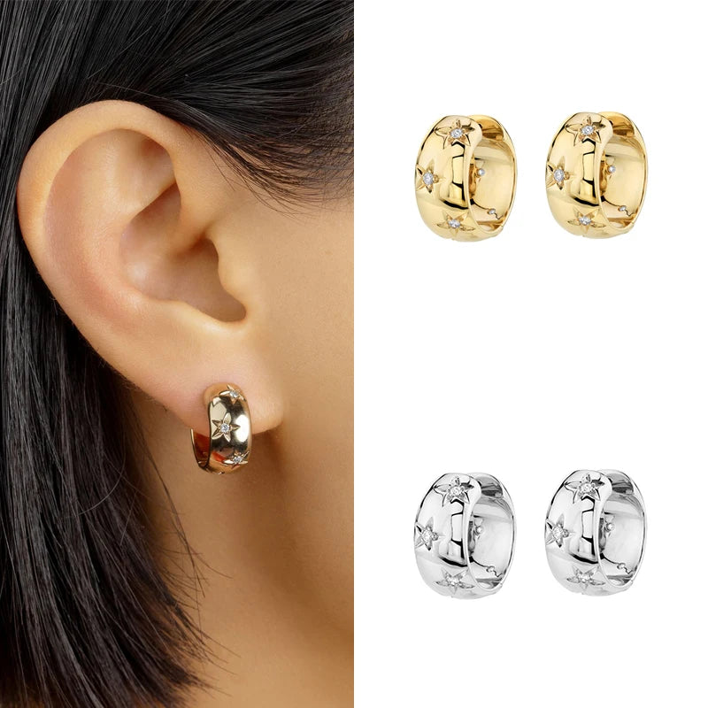Add a touch of sparkle with these personalized silver hoop earrings featuring zircon studs. Perfect for any occasion!