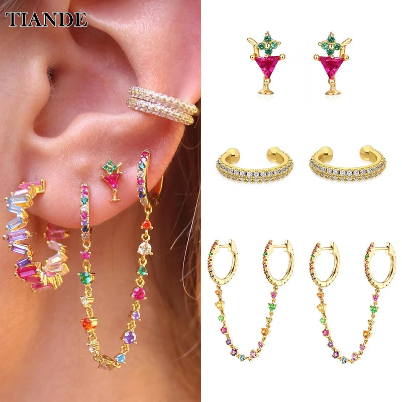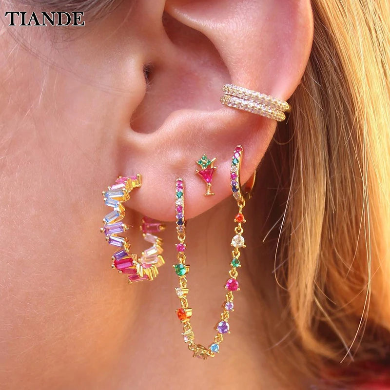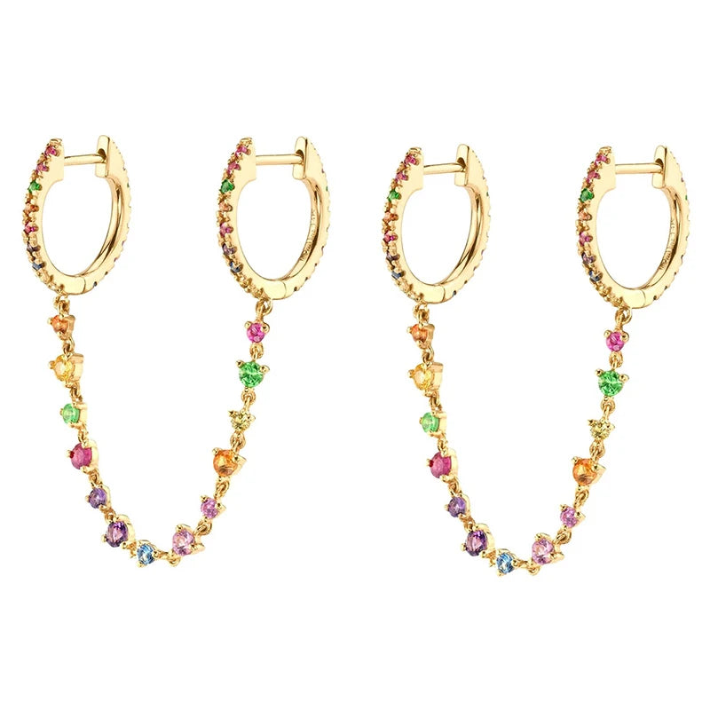 Add a touch of elegance to your look with these silver plated chain hoop earrings featuring color zircon ear cuff stud design.