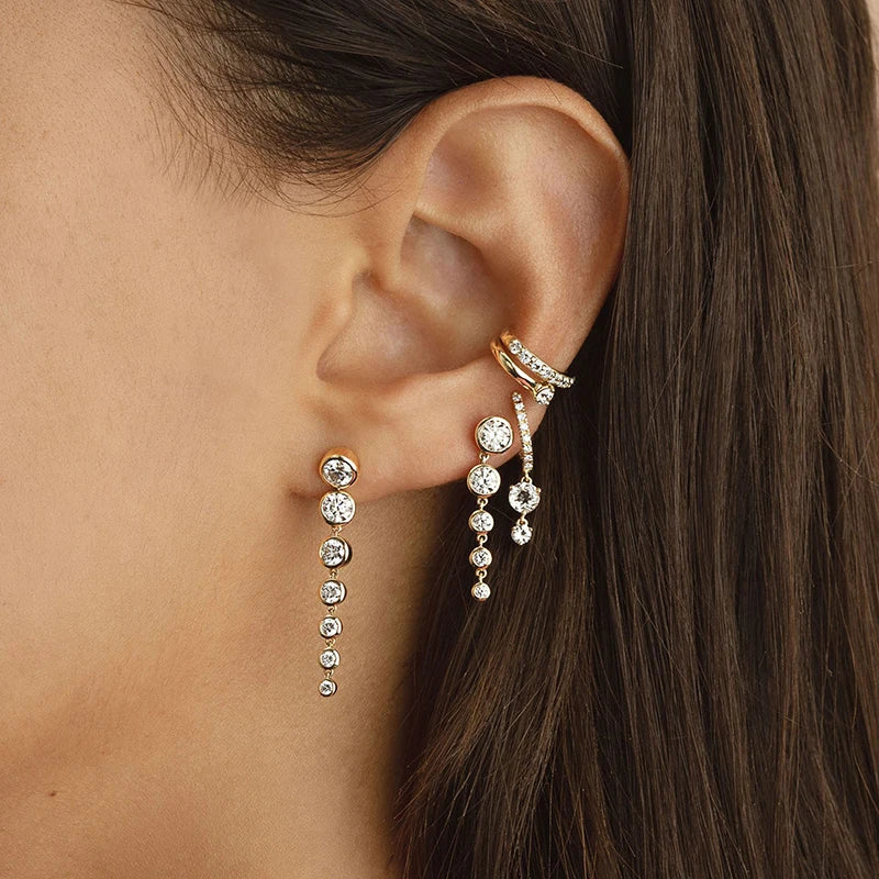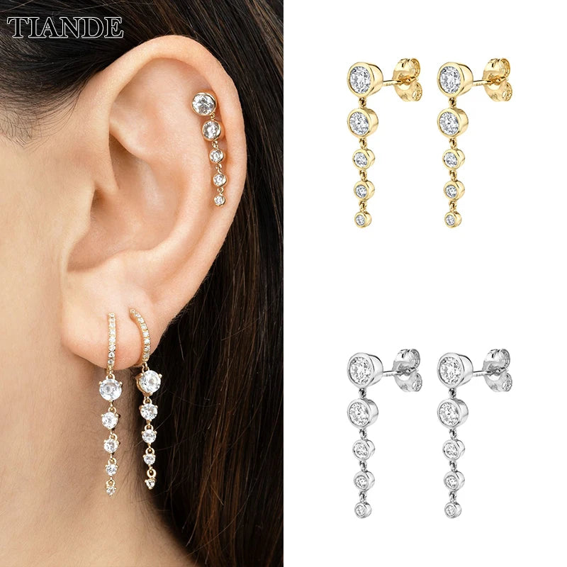 Elegant silver plated stud earrings featuring CZ zircon chain design. Perfect for adding a touch of sparkle to your outfit.