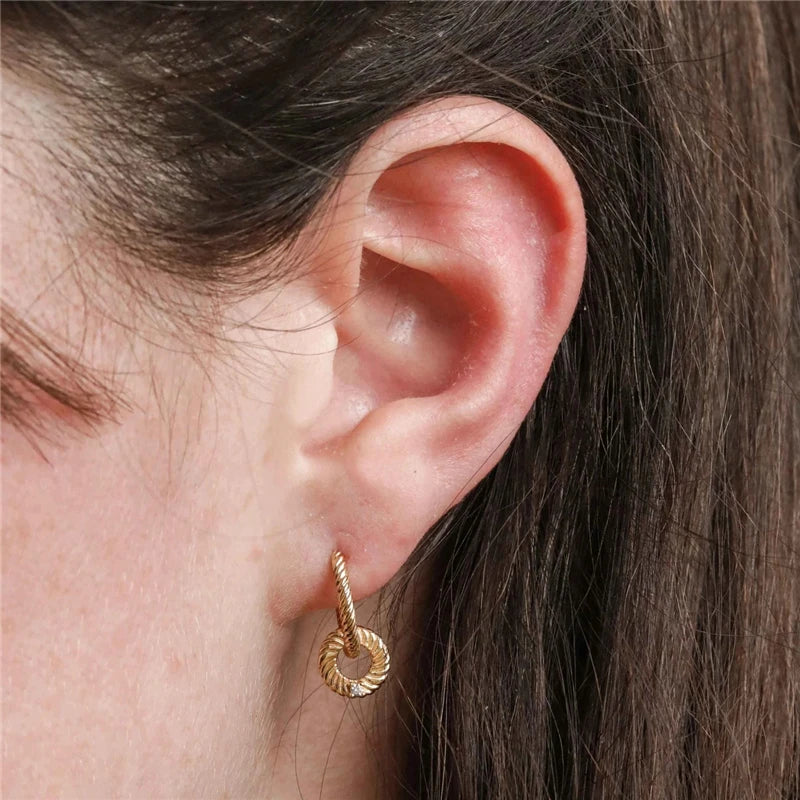 Enhance your style with these silver-plated twisted circle hoop earrings featuring crystal embellishments. Perfect for all occasions!