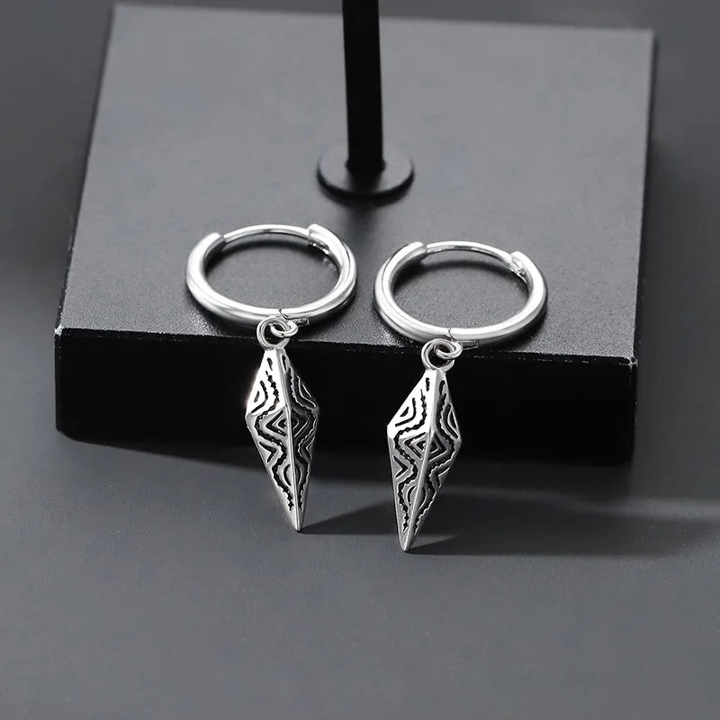 These hot silver retro ethnic diamond pendant earrings are suitable for both men and women.