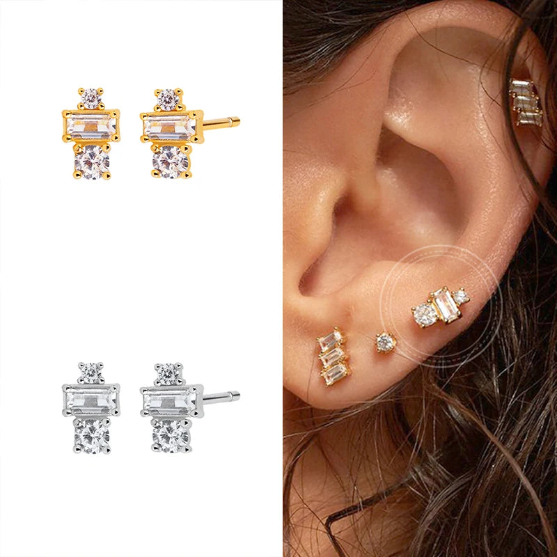 Sparkling Silver CZ Stud Earrings for Women