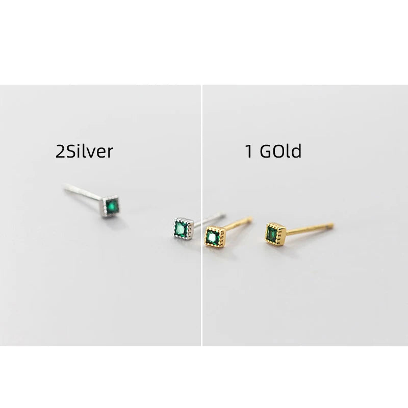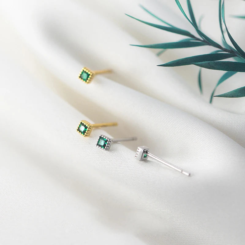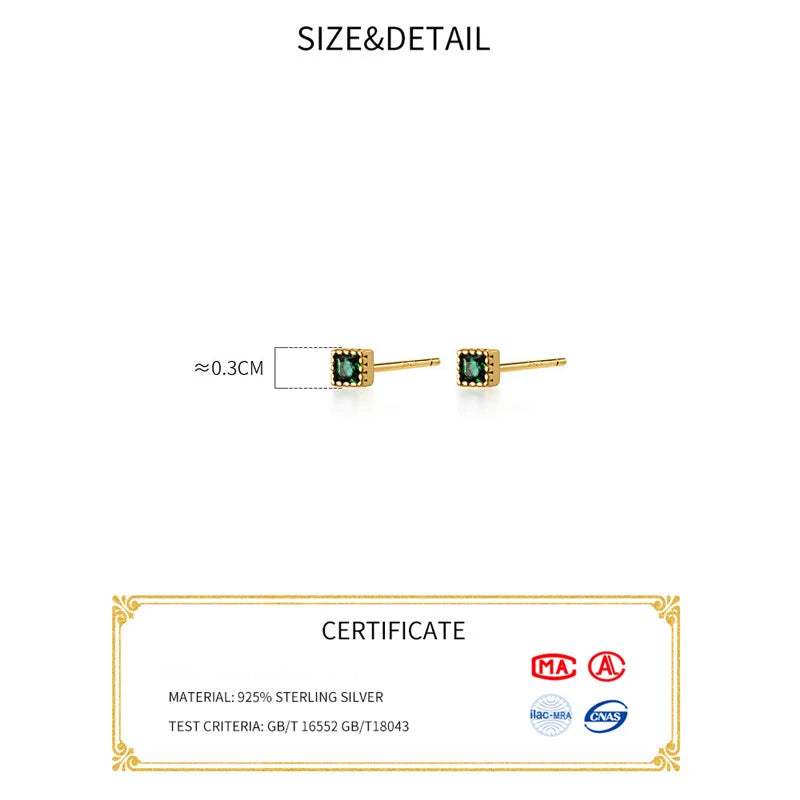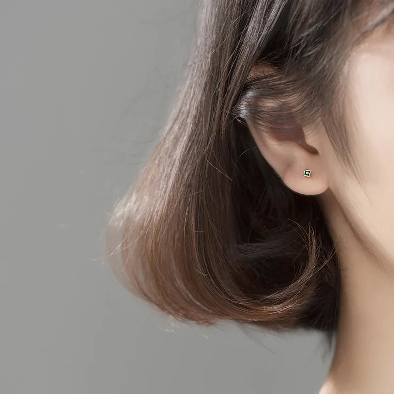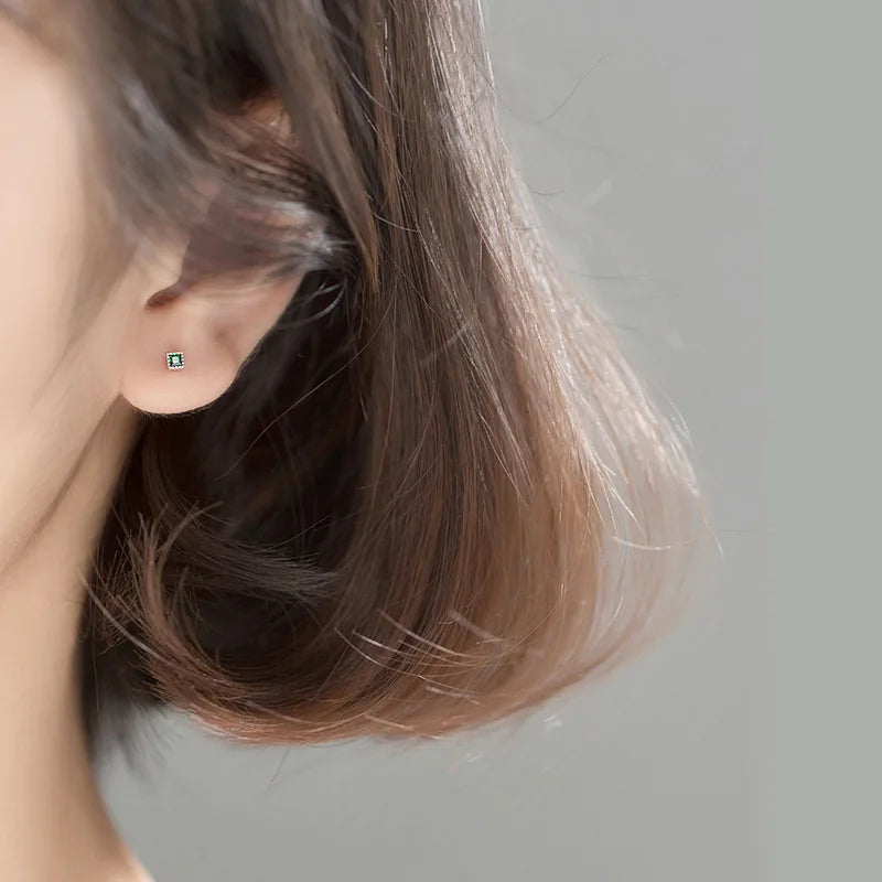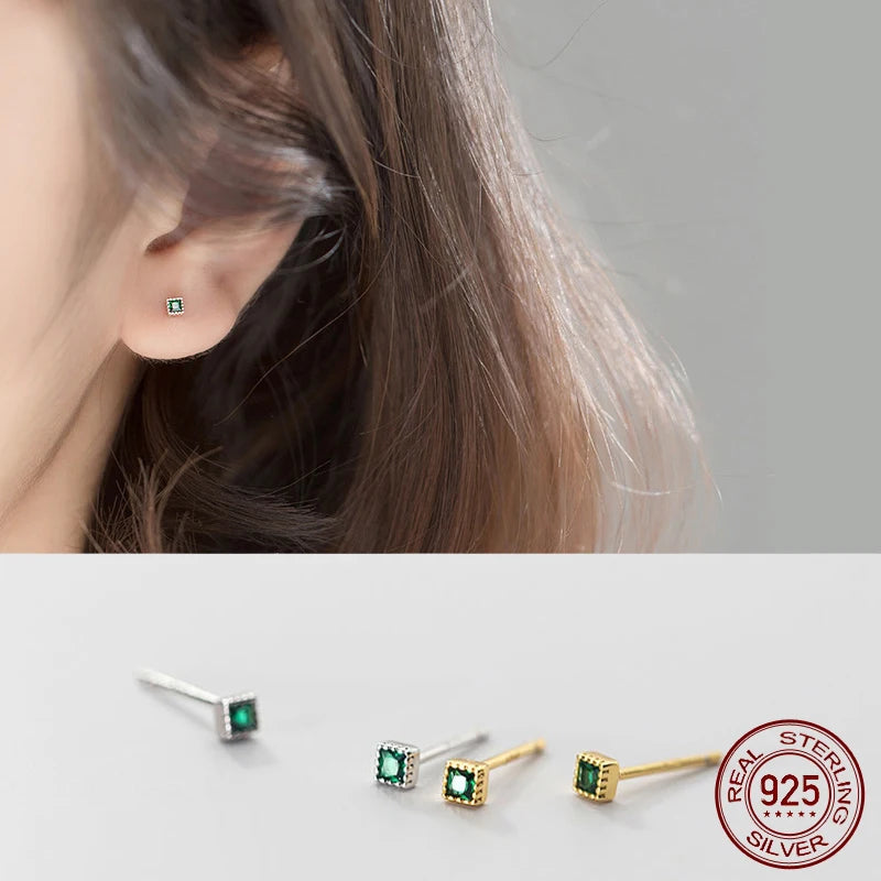 Square Stud Earrings Silver 925 Minimalist Fine Women Earrings