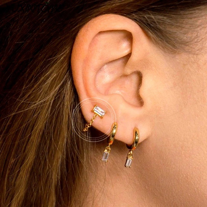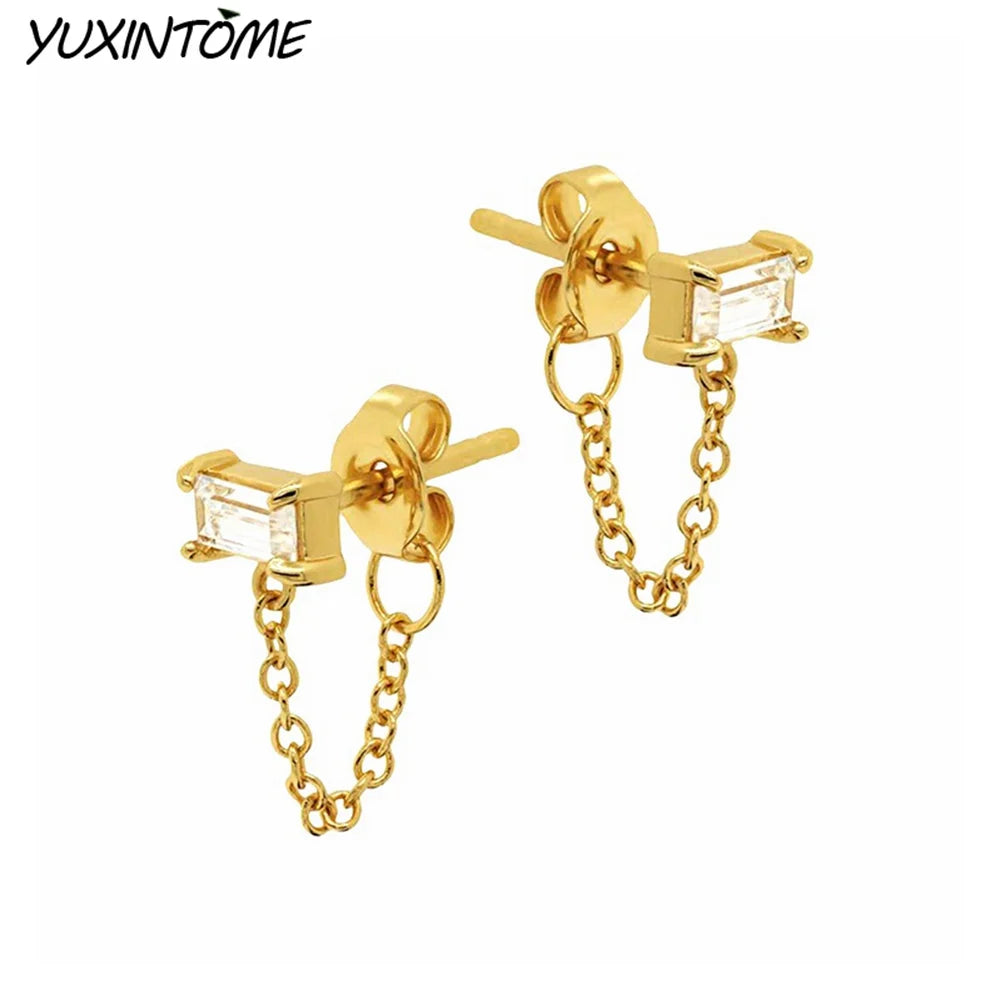 Elegant square zircon stud earrings crafted from 925 sterling silver with a 24K gold finish. Perfect for adding a touch of sophistication to any outfit.