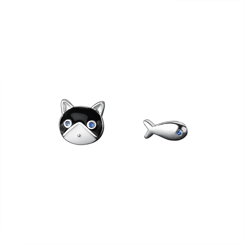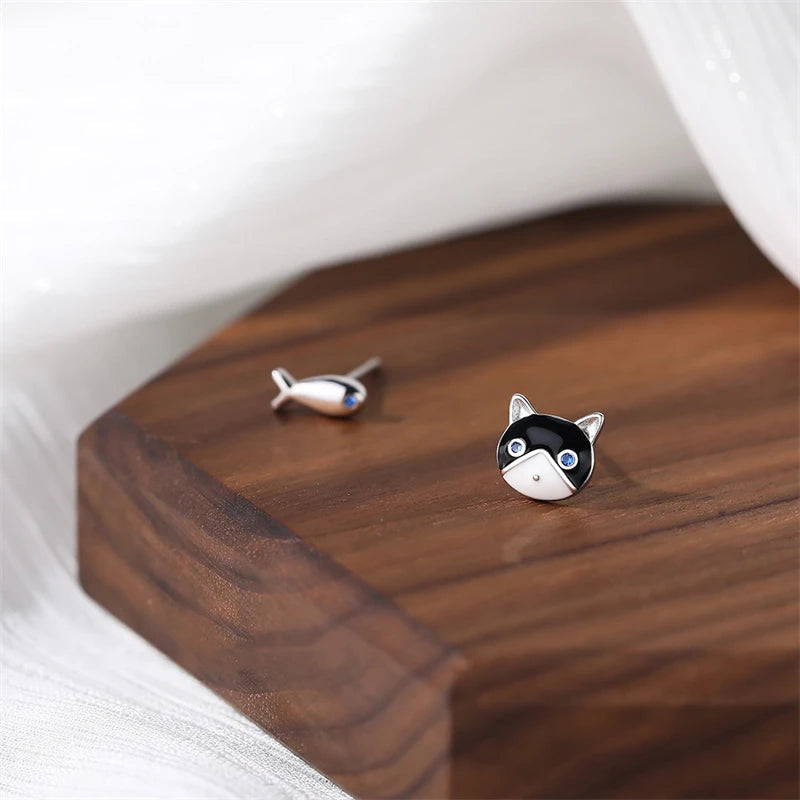 Adorable cartoon cat fish stud earrings, perfect for parties or as a birthday gift. Made of 925 sterling silver, suitable for women, girls, and teens.