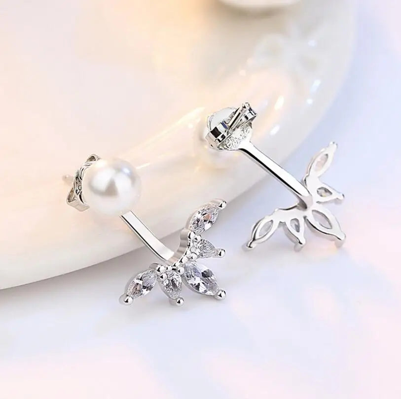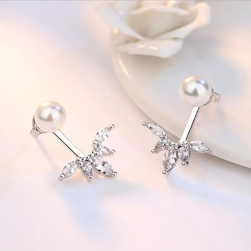 Elegant sterling silver horse-shaped earrings with zirconia peacock tail design and pearl accents. Perfect for women who love fine jewelry.
