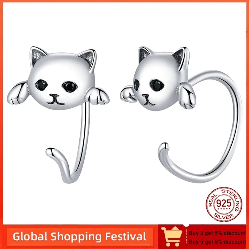 These cute cat stud earrings are made of 925 sterling silver, perfect for all occasions.