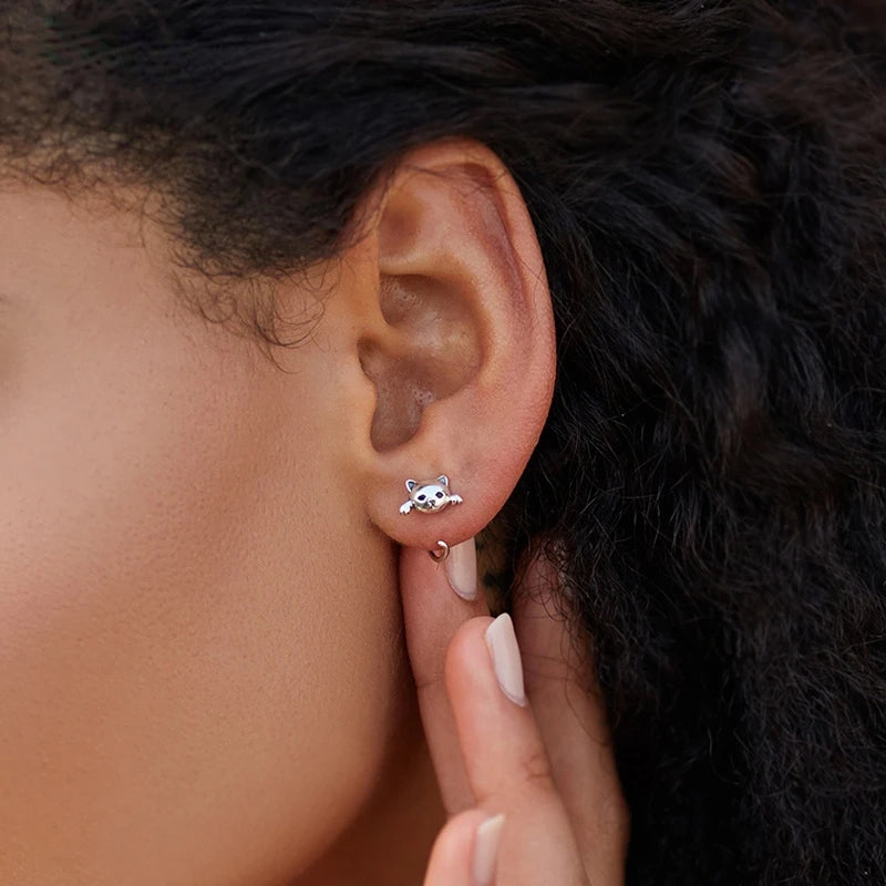 Sterling Silver Mini Cat Stud Earrings Animal Tail Ear Studs