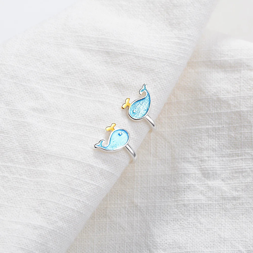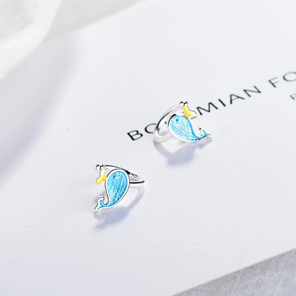 Adorable whale-shaped stud earrings made of 100% sterling silver, perfect gift for girls who love marine animals.