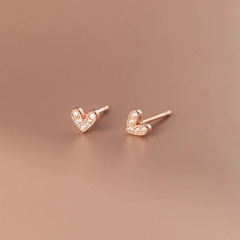 Adorn yourself with these charming heart-shaped stud earrings, crafted from 925 sterling silver and featuring sparkling cubic zirconia. Perfect for weddings or daily wear.