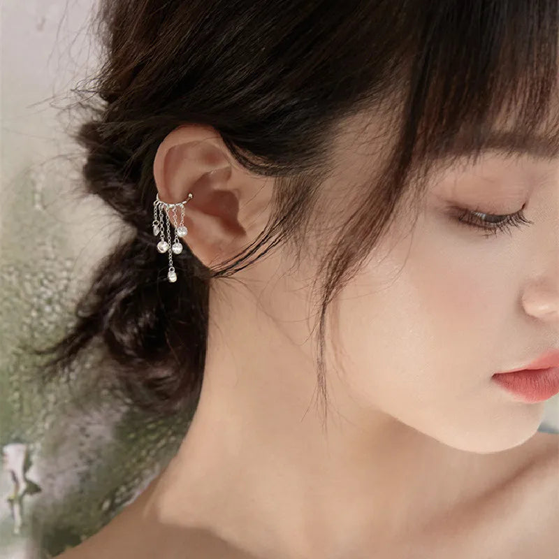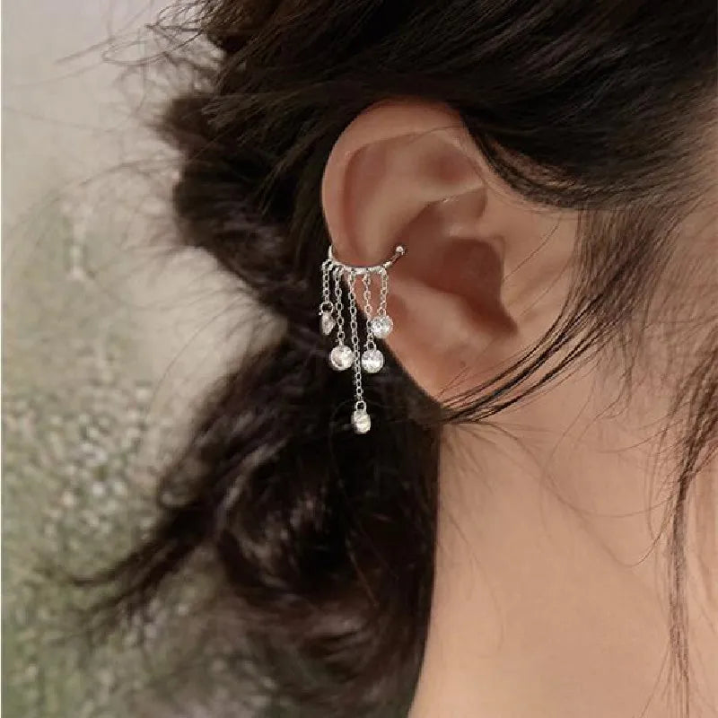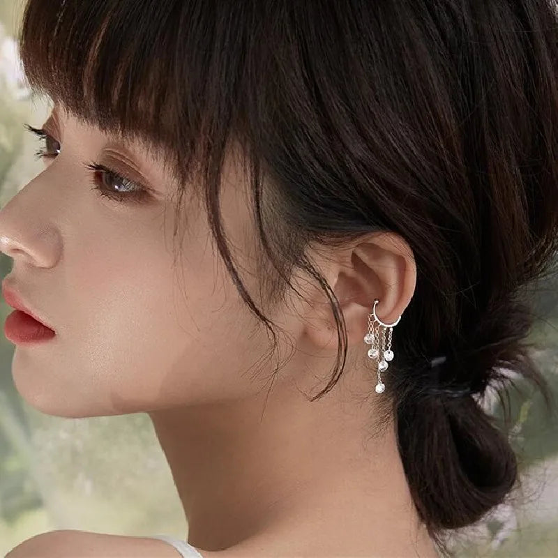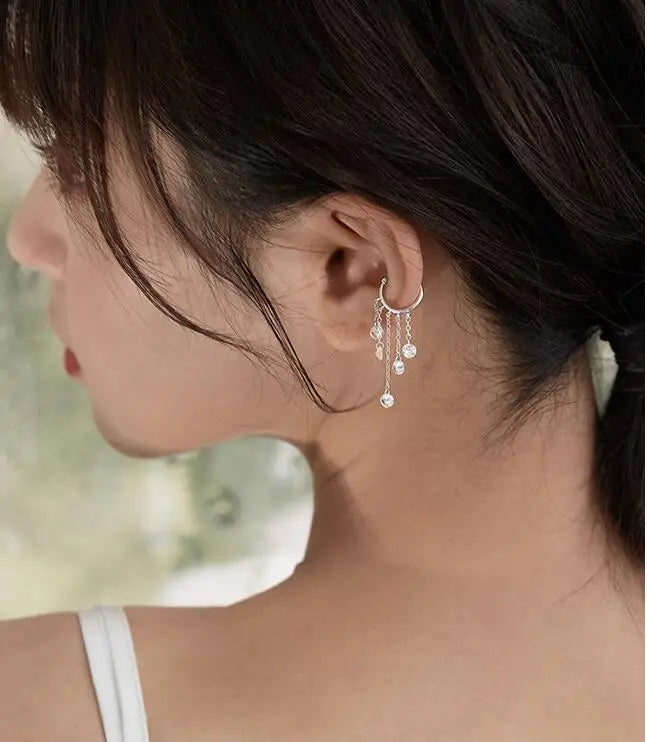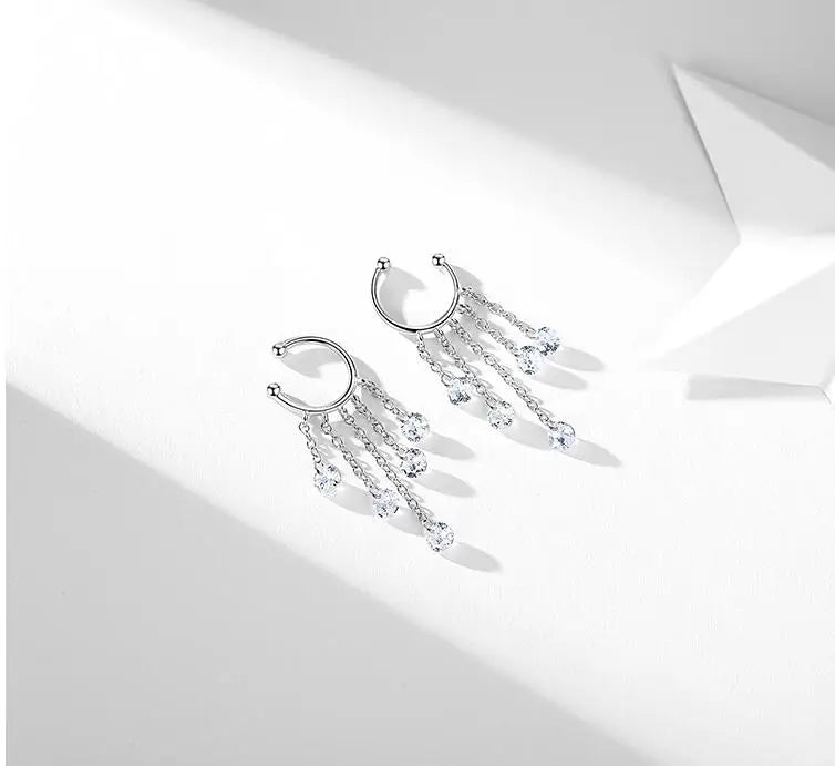 Add a touch of elegance with these tassel cubic zircon round bead clip earrings. Made of 925 sterling silver, they are perfect for women who don't have a piercing. They are comfortable and stylish, adding a sophisticated flair to any outfit.