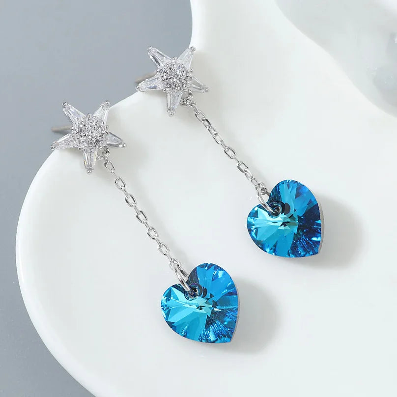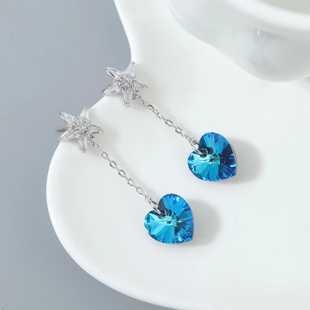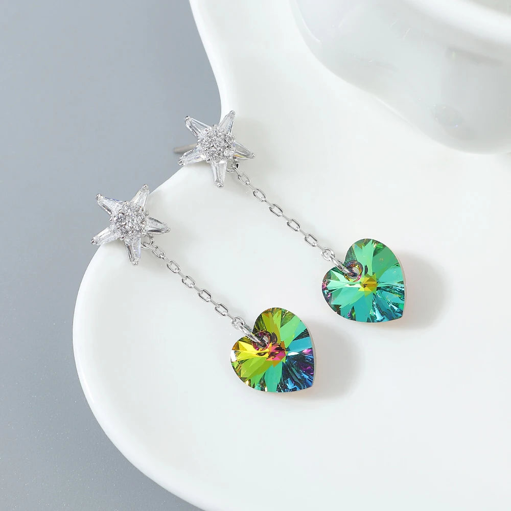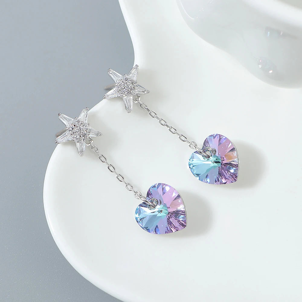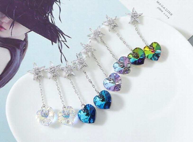 Stylish tassel heart earrings with Austrian crystal element. Perfect gift for women.
