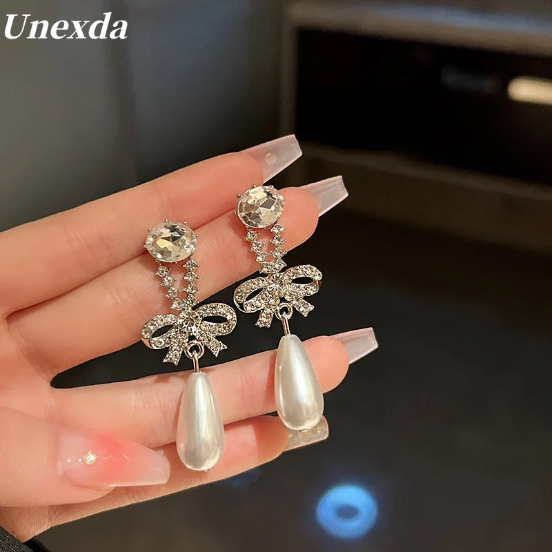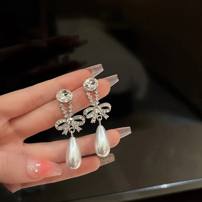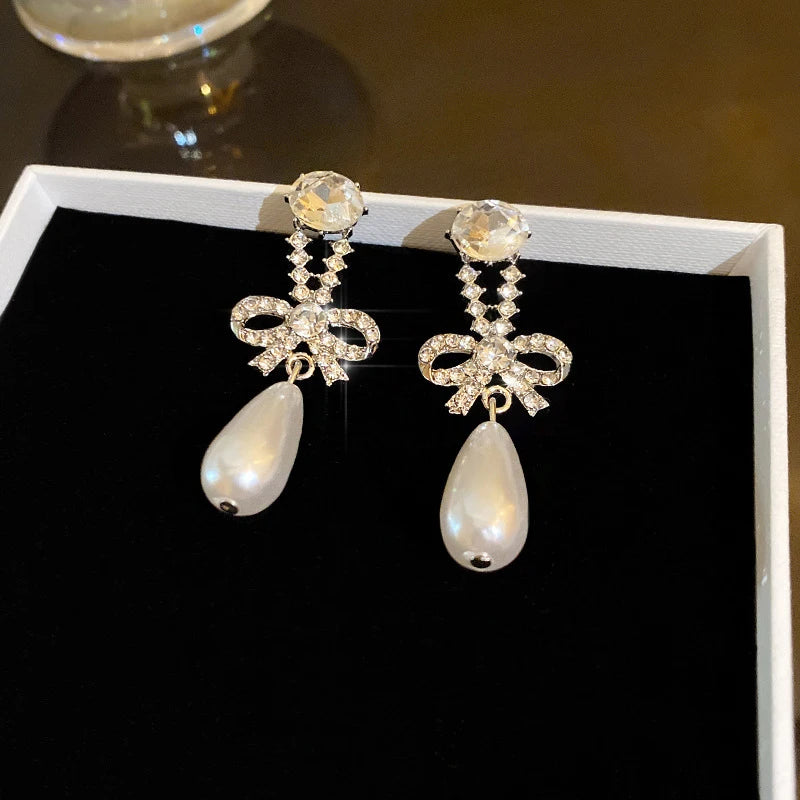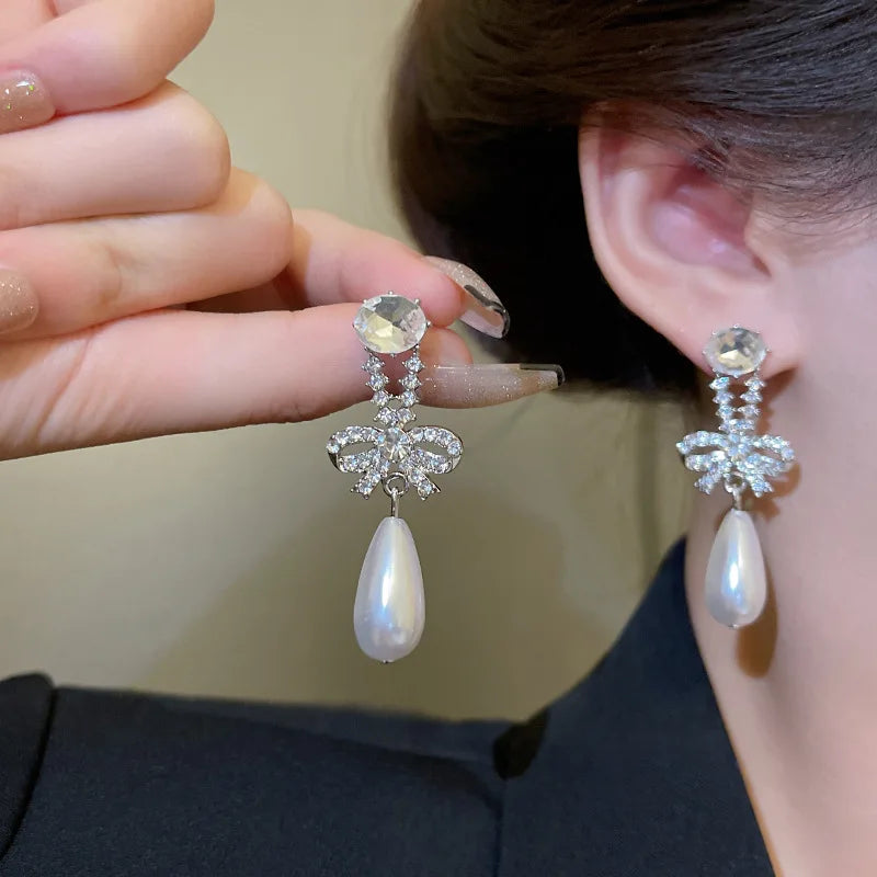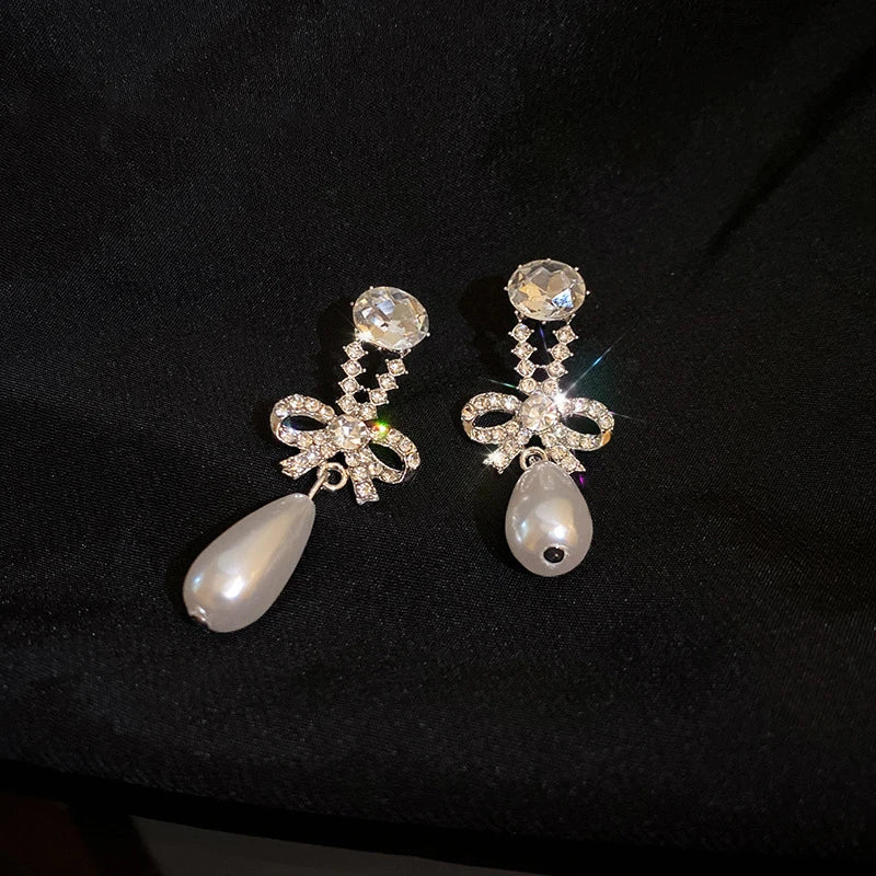Add a touch of femininity and elegance with these retro tassel long pearl earrings. The earrings feature a diamond bow knot design, making them perfect for special occasions and adding a touch of glamour to your outfit.