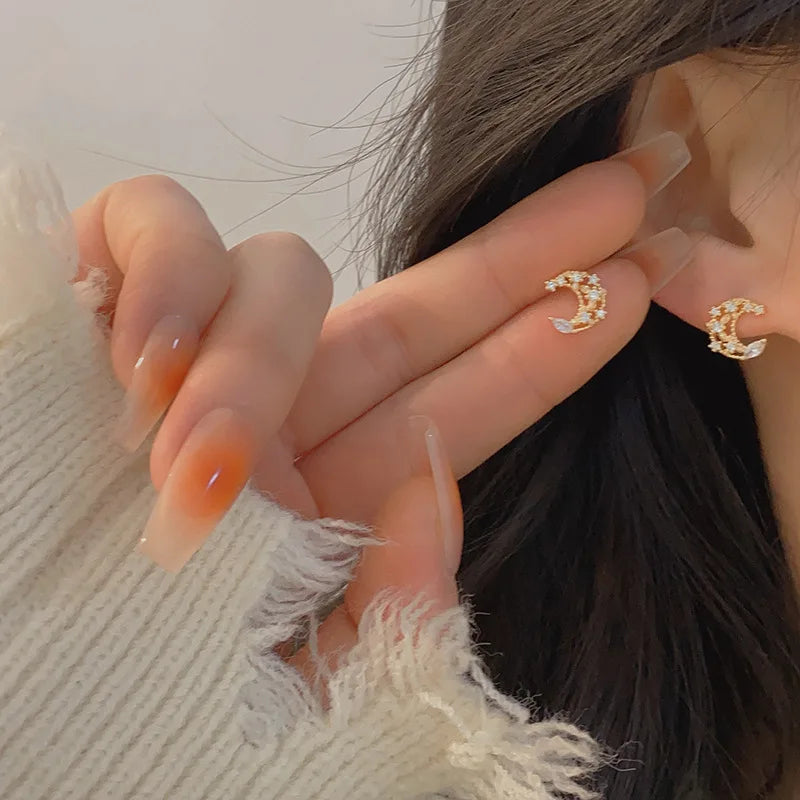 - Tiny micro inlaid top shine zircon earrings