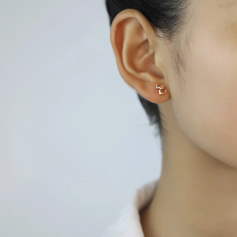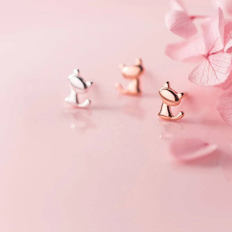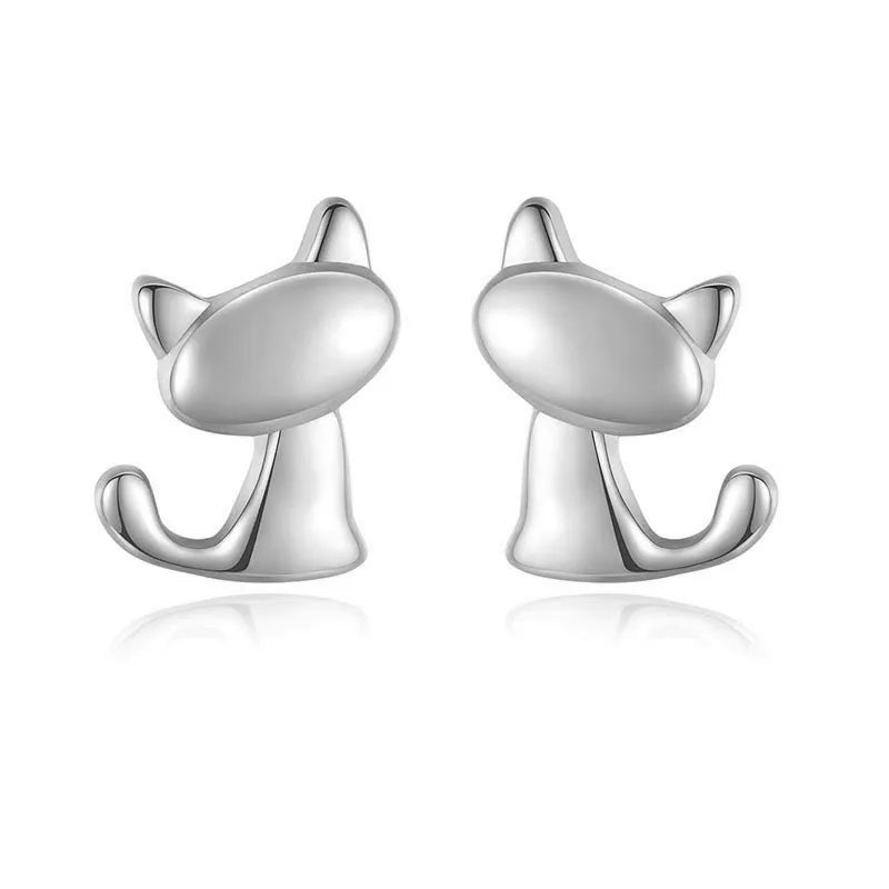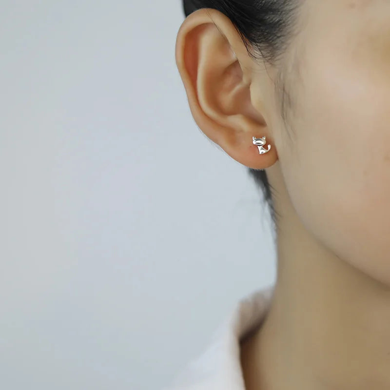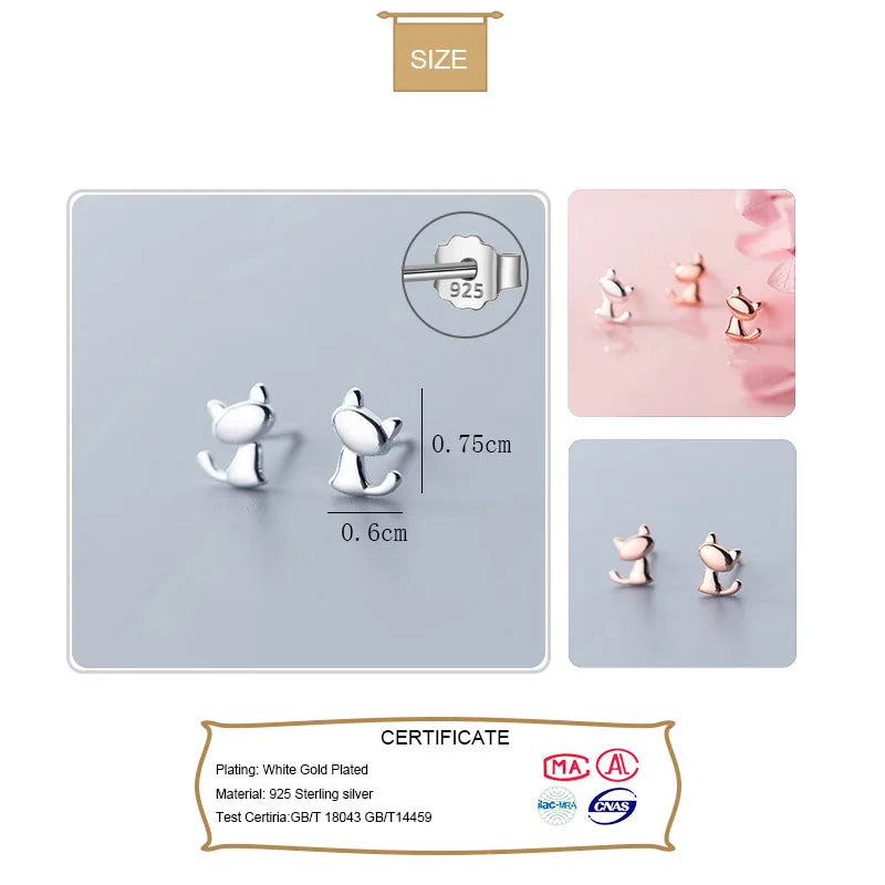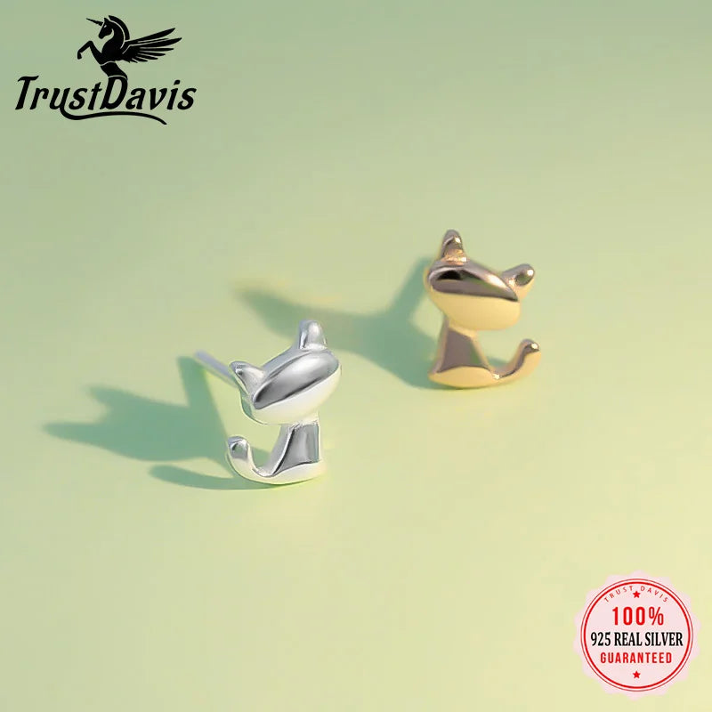 Adorable cat-shaped stud earrings made of 925 sterling silver, perfect for women, girls, and kids. Delicate and stylish jewelry by Trustdavis.