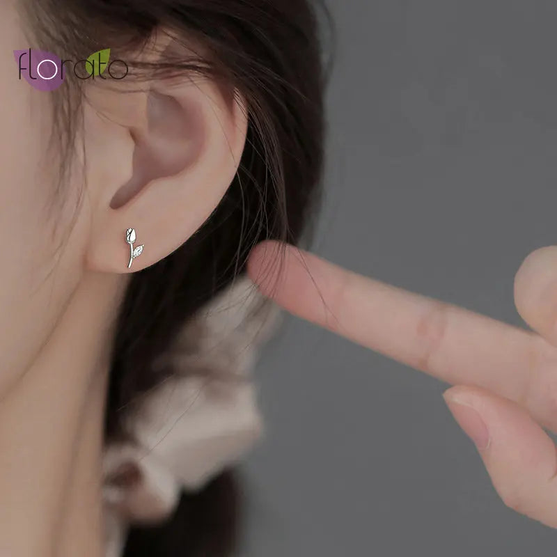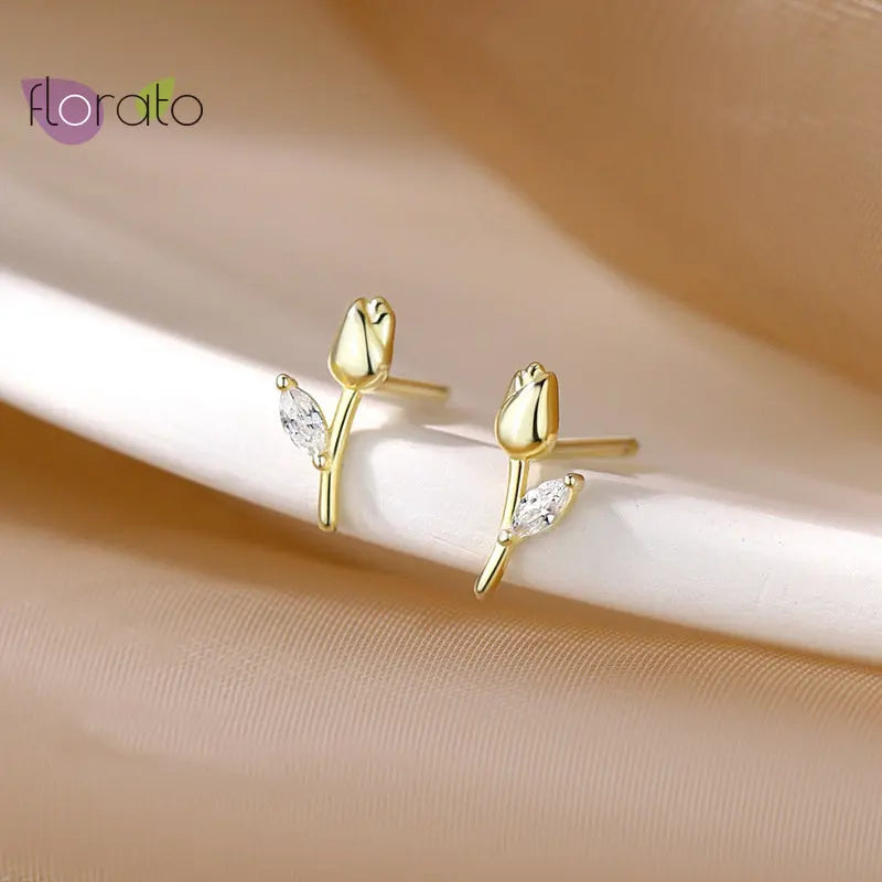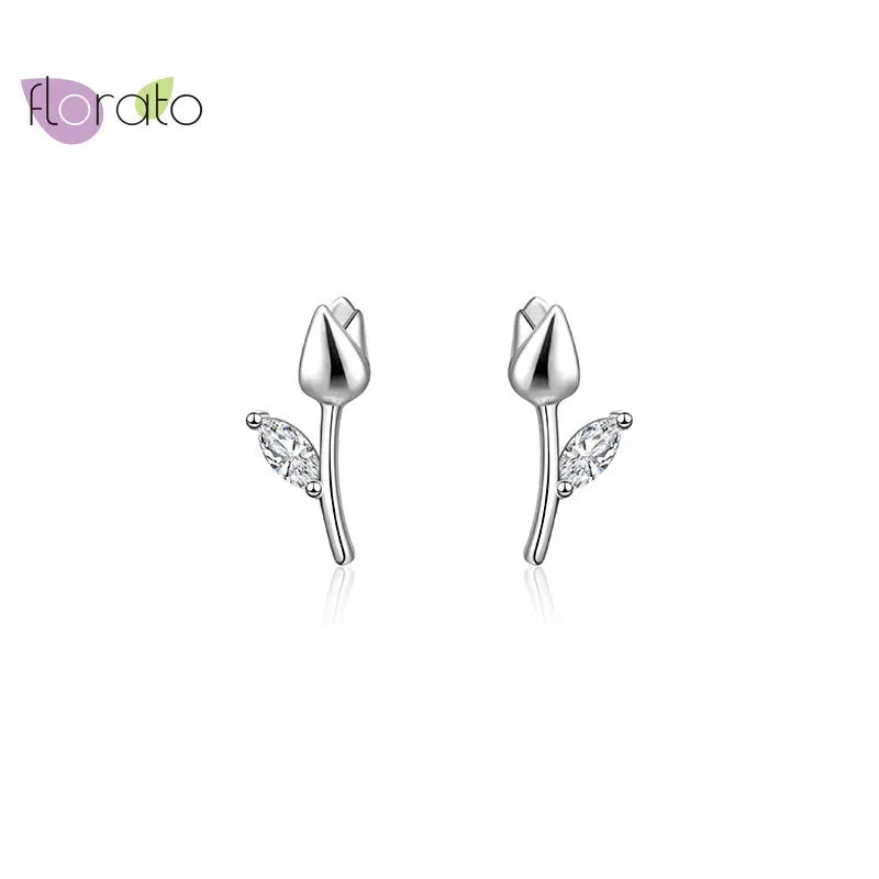 Tulip Earrings 925 Silver Flower Stud Earrings Crystal Piercing Jewelry