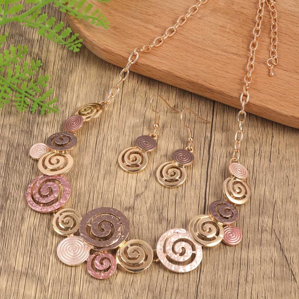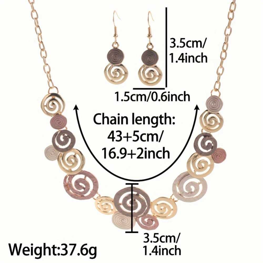 Vintage Luxury Adjustable Enamel Geometric Necklace & Earrings Set Women's Fashion Jewelry