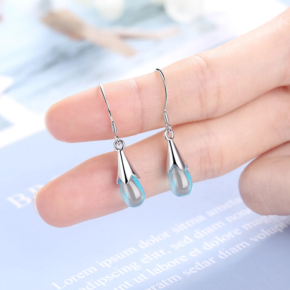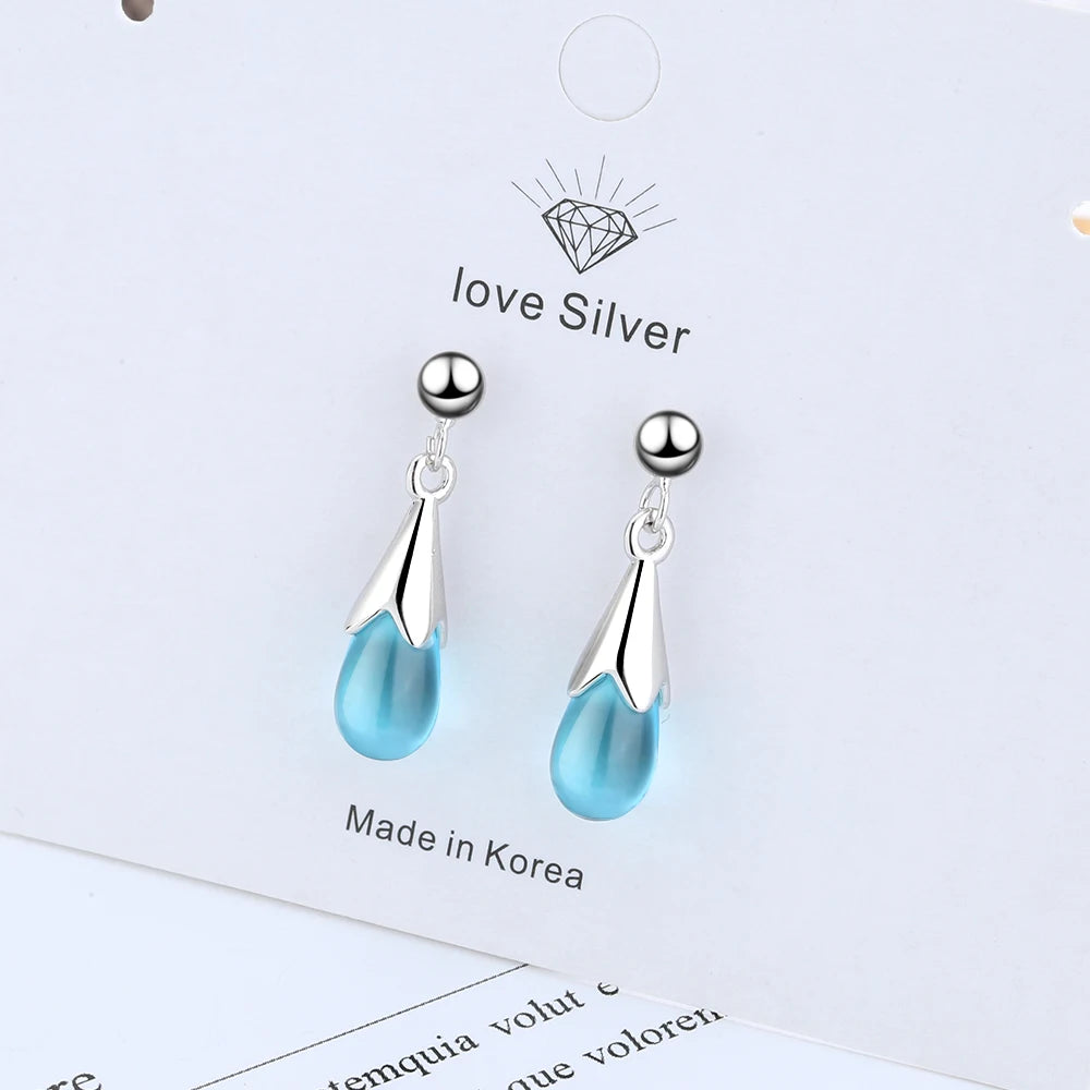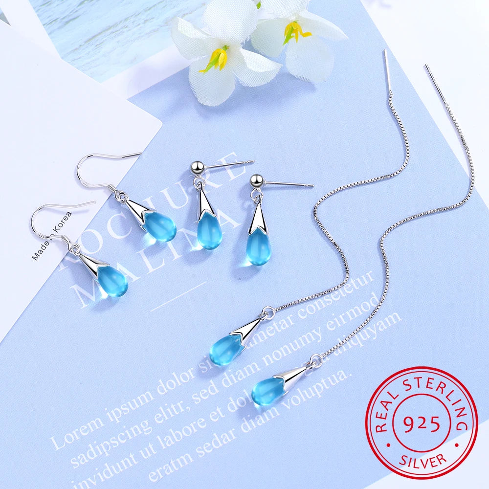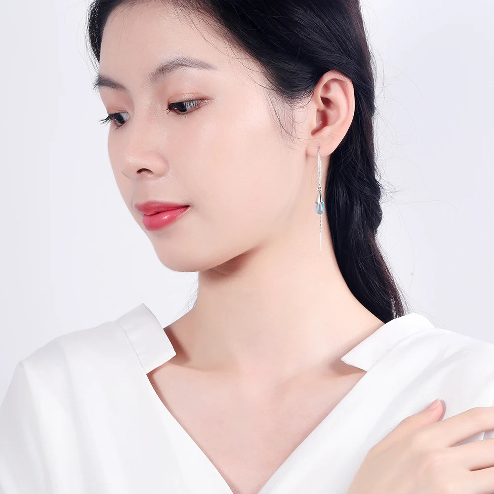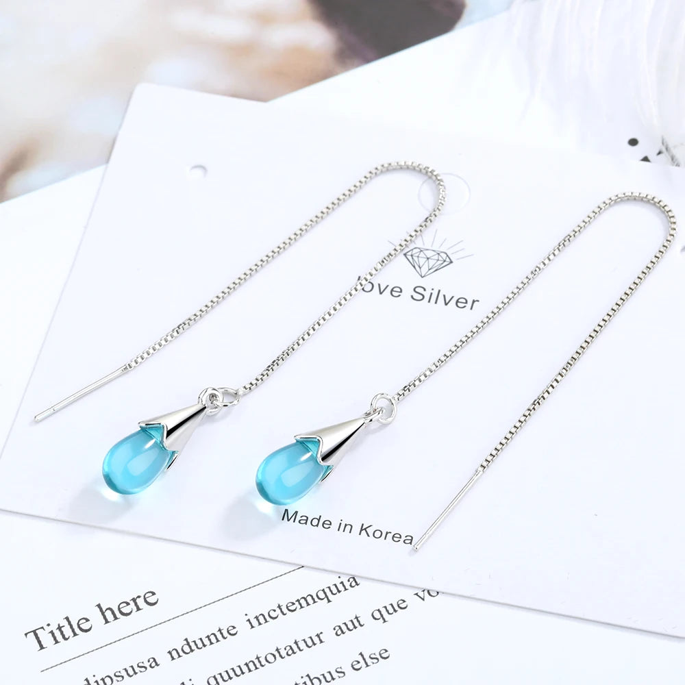Sparkling water drop earrings crafted from 925 sterling silver with a chic long tassel chain design.
