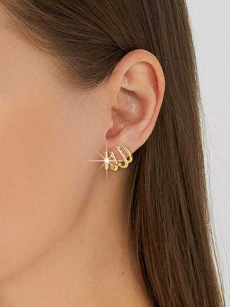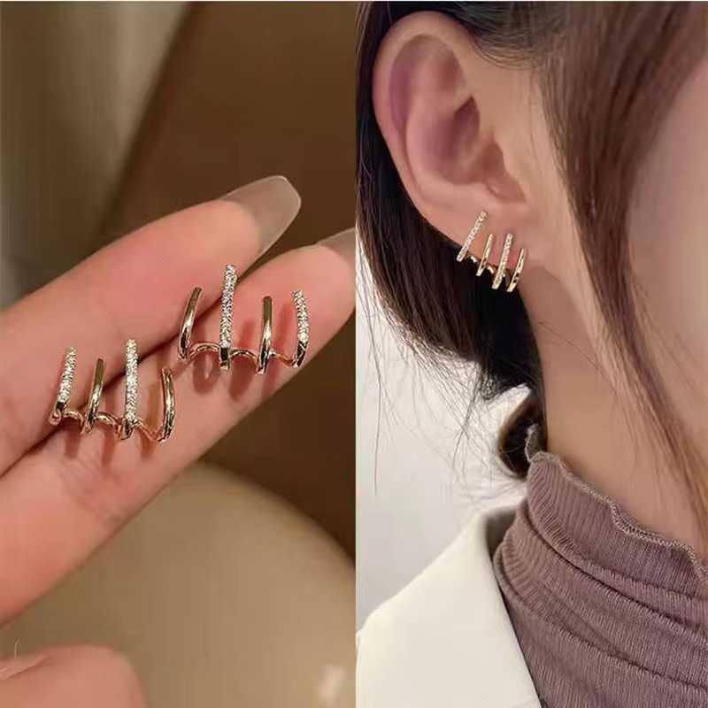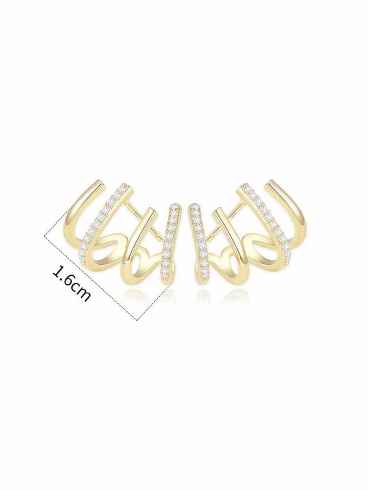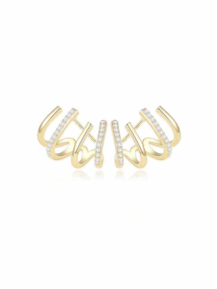 Women's Gold Plated Multi Hoop Claw Cuff Stud Earring