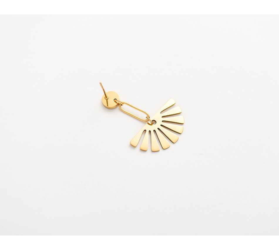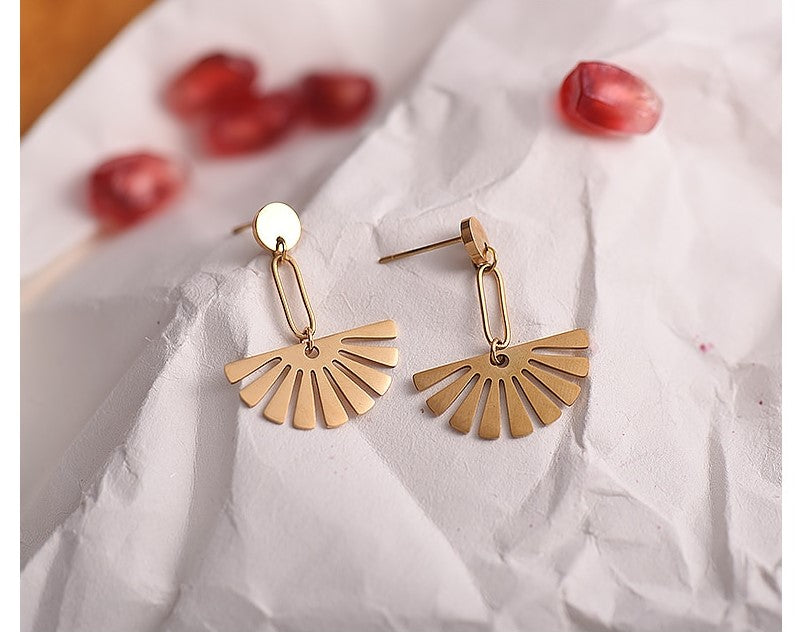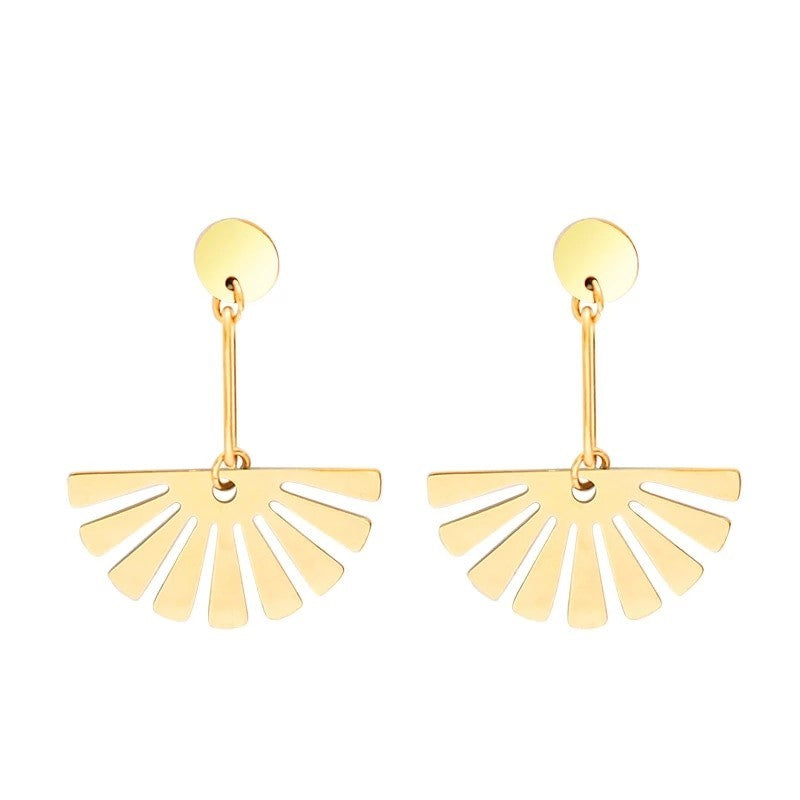 These elegant and contemporary earrings feature a hollow-out sector round design drop that hangs on a stud top. This pair of drop earrings make a ray of little sunshine to your lobes that adds a simplistic yet elegant touch to your everyday looks.