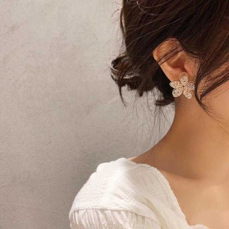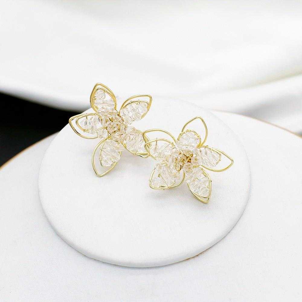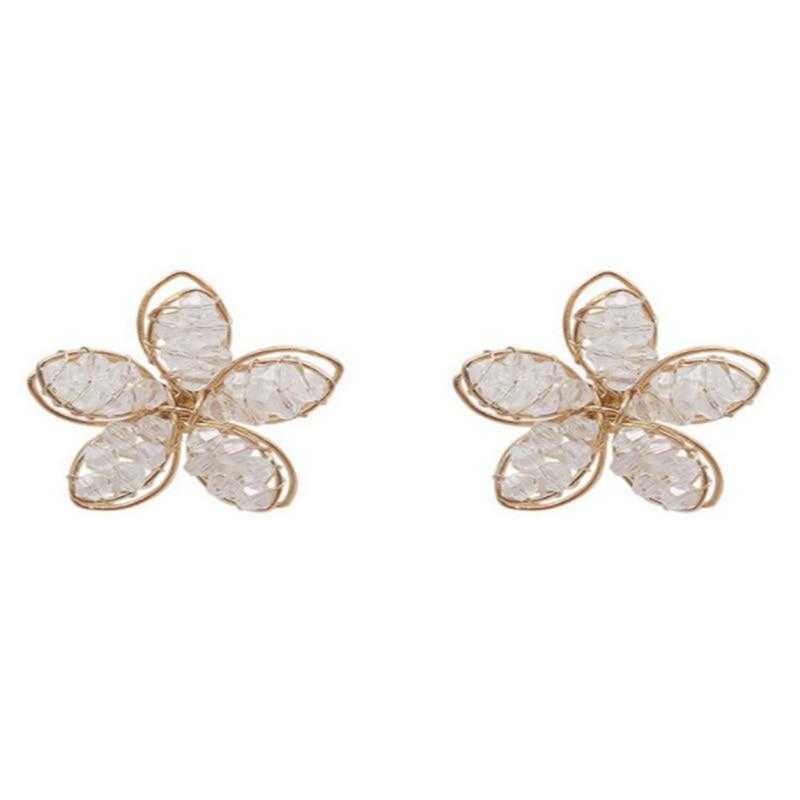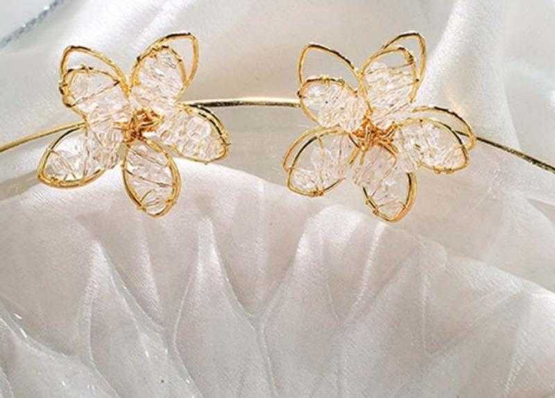 Add a splash of floral essence to your look as you opt for these crystal-studded floral earrings. It is secured with a push back closure. A simple yet elegant stud which will match your any casual ensemble.