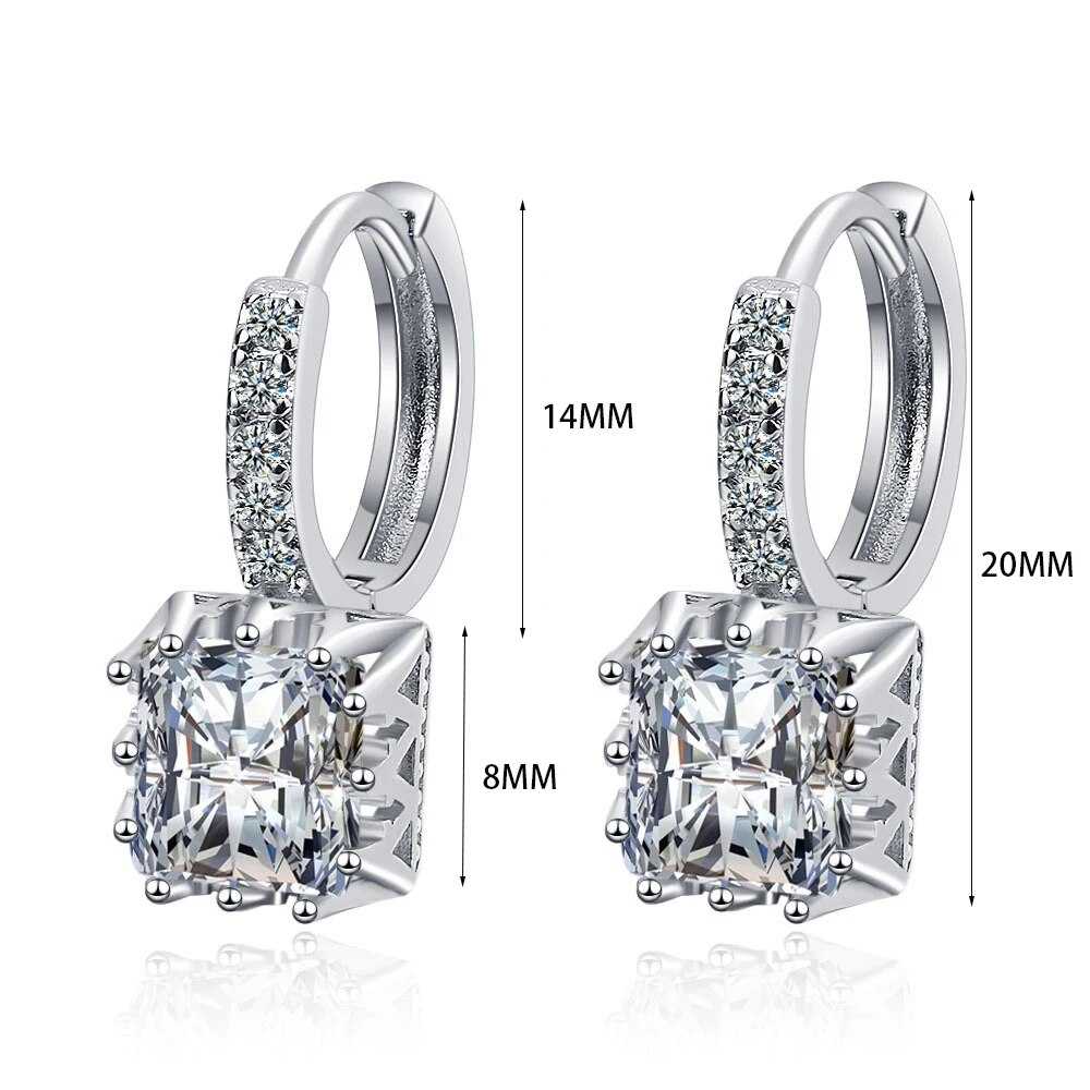 Women's Cubic Zirconia Square Drop Earrings With Hoop Closure