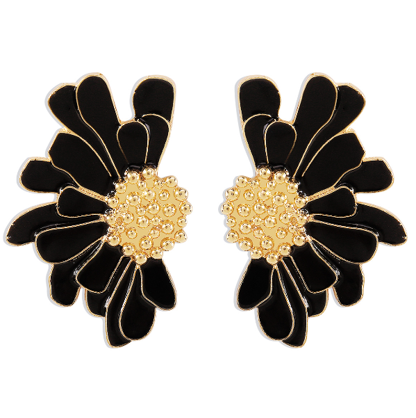 Women's Flower Petal Shaped Cloud Drip Effect Gold Plated Earring